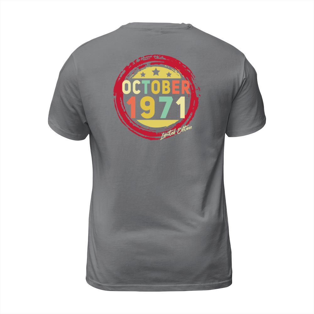 Shop 1971 In October Gift Idea Men's T-Shirt custom made just for you. Available on many styles, sizes, and colors.