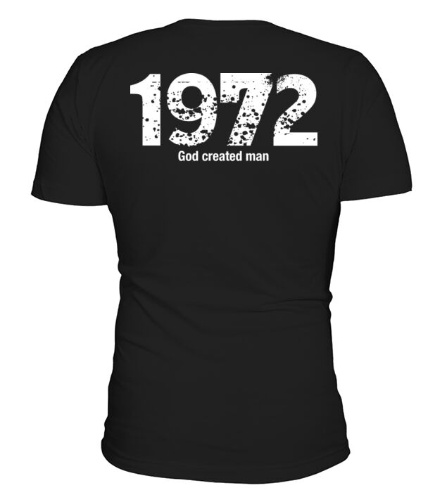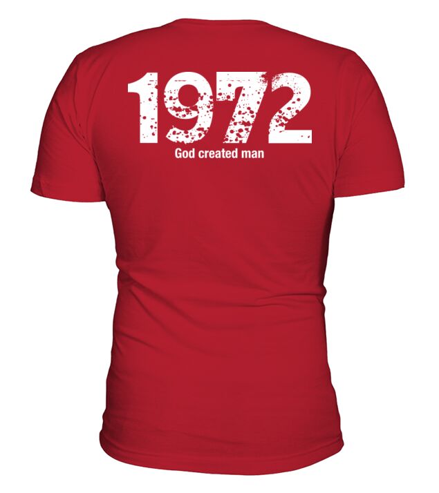 Shop 1972 God created man V-Neck T-shirt custom made just for you. Available on many styles, sizes, and colors.