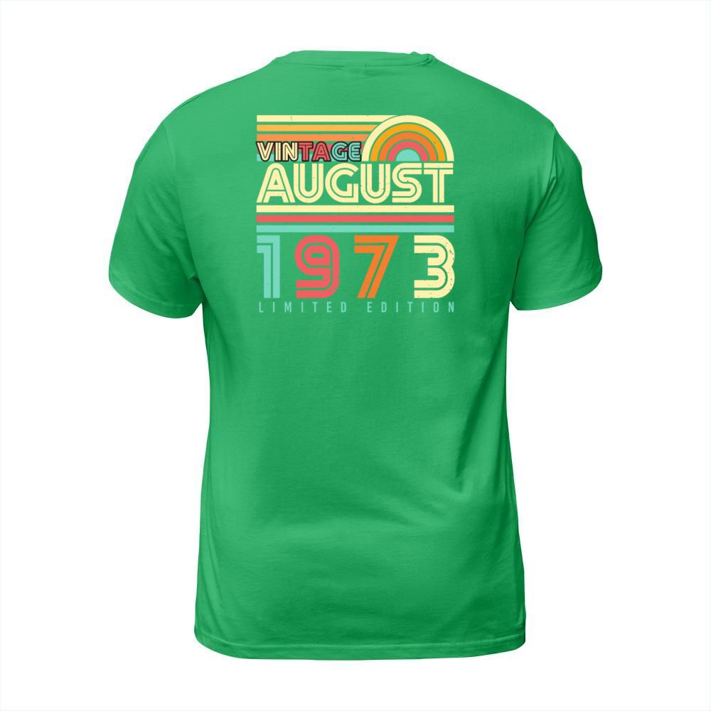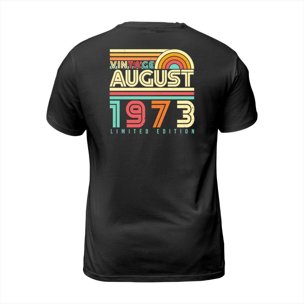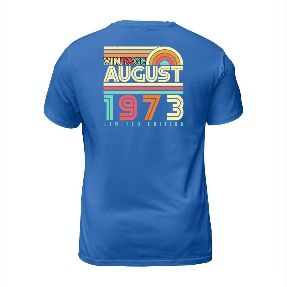 Shop 1973 In August Gift Idea T-Shirt Unisex custom made just for you. Available on many styles, sizes, and colors.