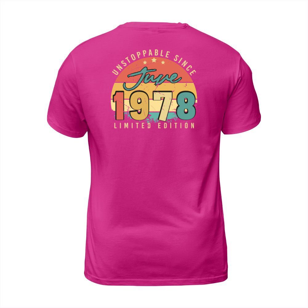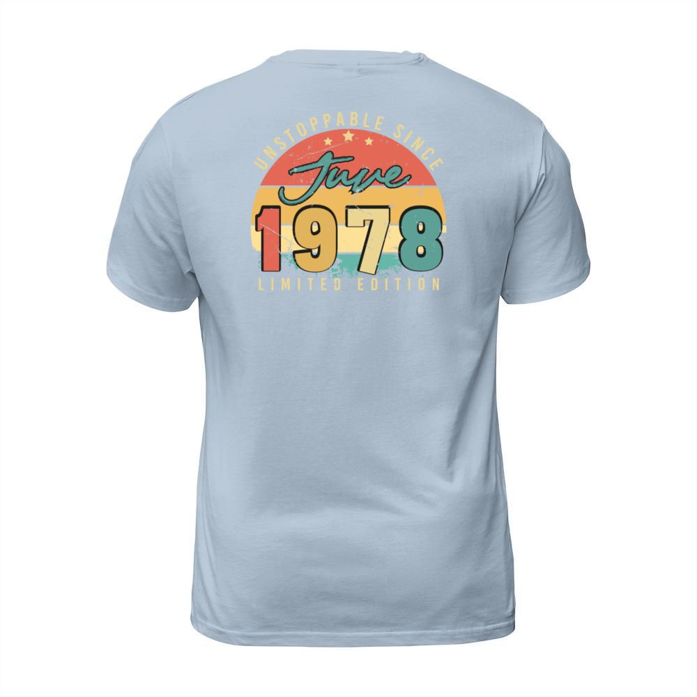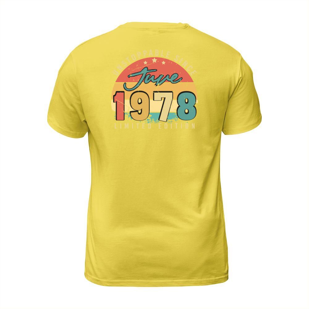 Shop 1978 June Birthday Greeting T-Shirt Unisex custom made just for you. Available on many styles, sizes, and colors.
