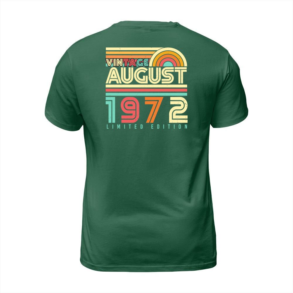 Shop 50th Anniversary August 1972 T-Shirt Unisex custom made just for you. Available on many styles, sizes, and colors.