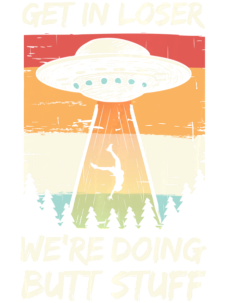 Shop Alien Abduction Get In Loser Were Doing Butt Stuff T-Shirt Unisex custom made just for you. Available on many styles, sizes, and colors.
