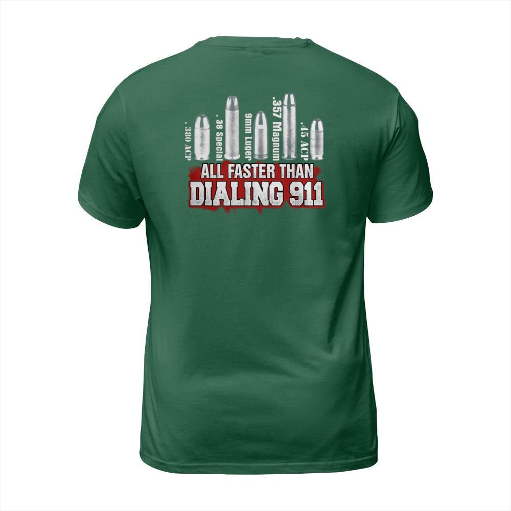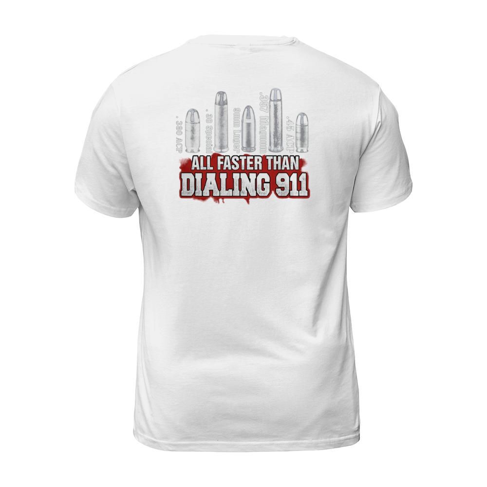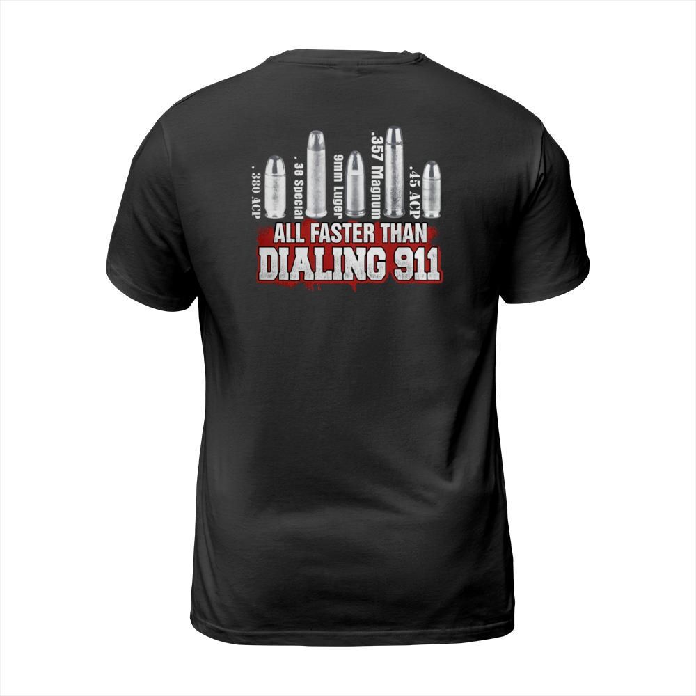 Shop All Faster Than Dialing 911 T-Shirt Unisex custom made just for you. Available on many styles, sizes, and colors.