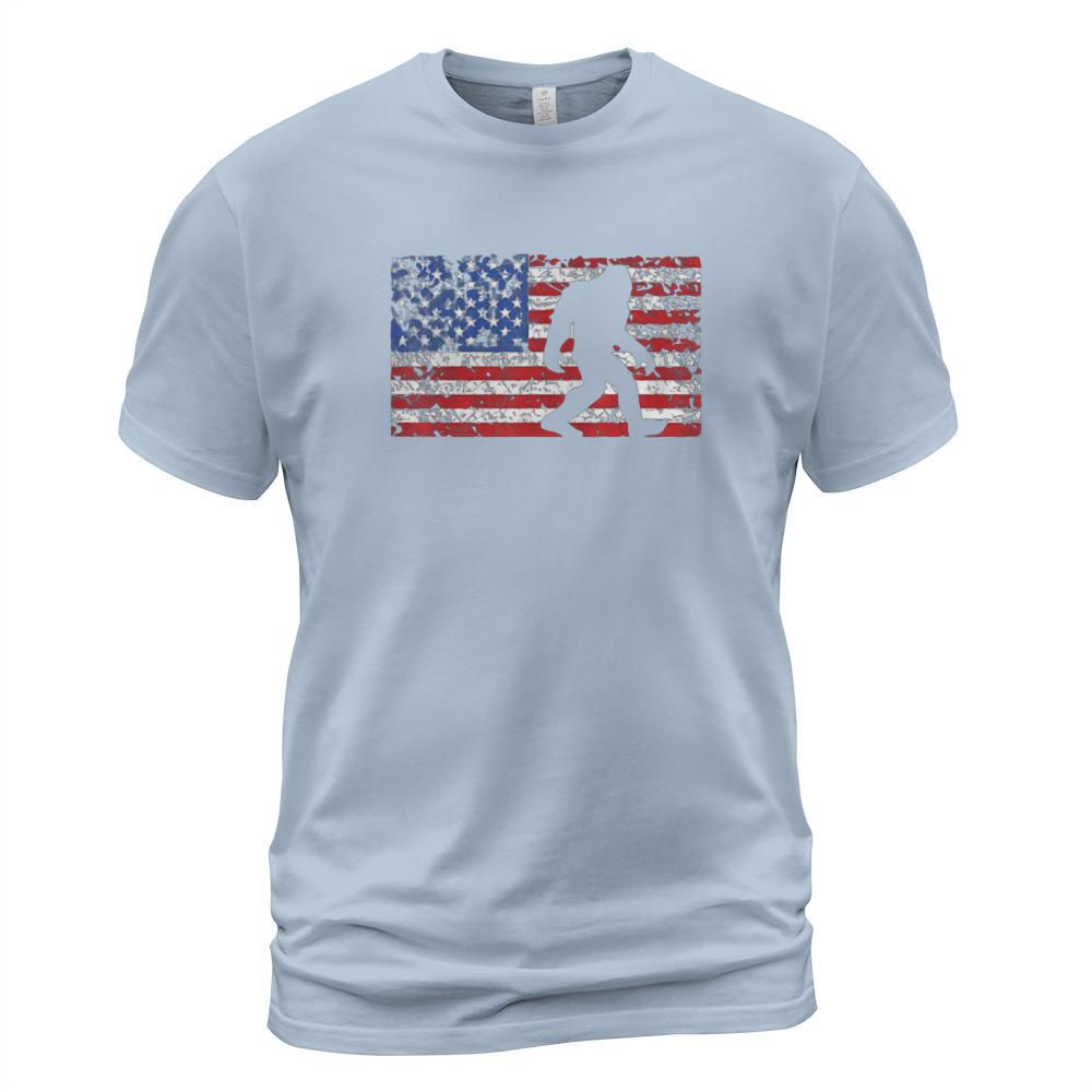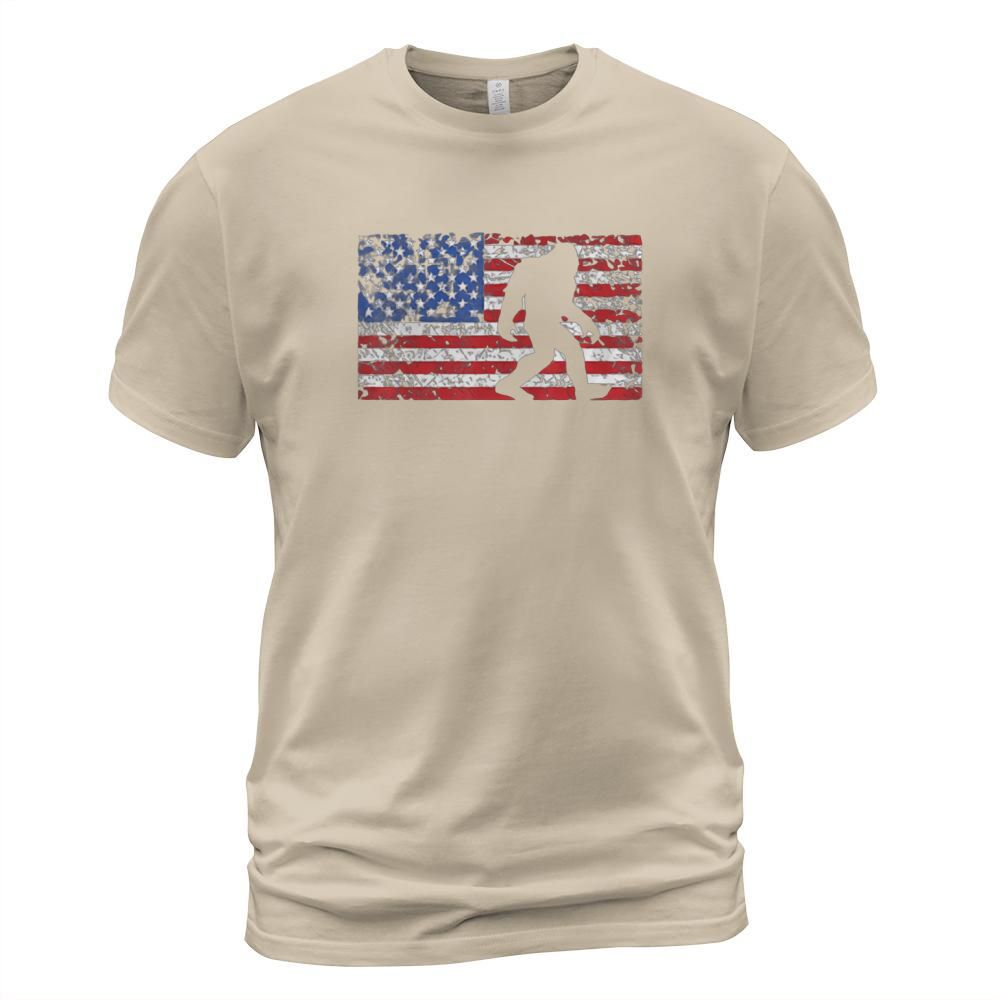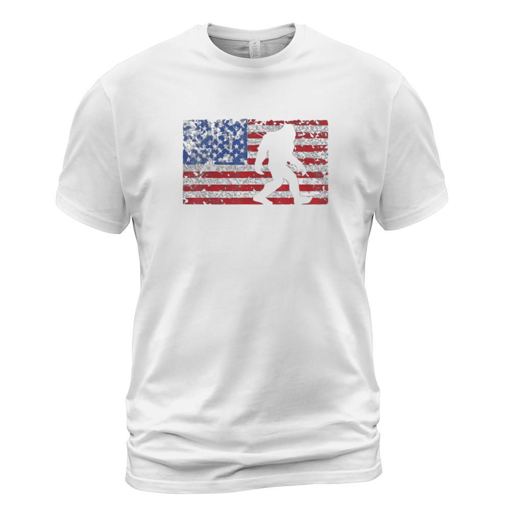 Shop American Flag Bigfoot T-Shirt Unisex custom made just for you. Available on many styles, sizes, and colors.