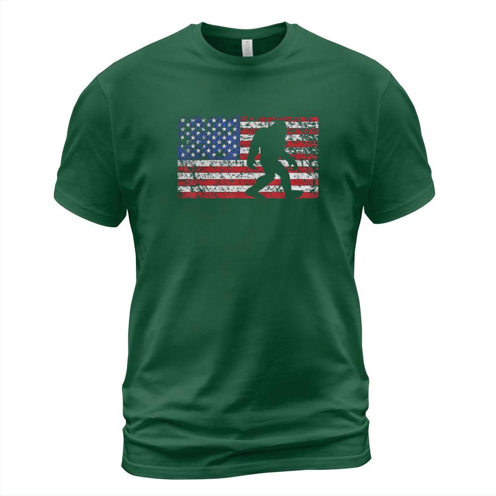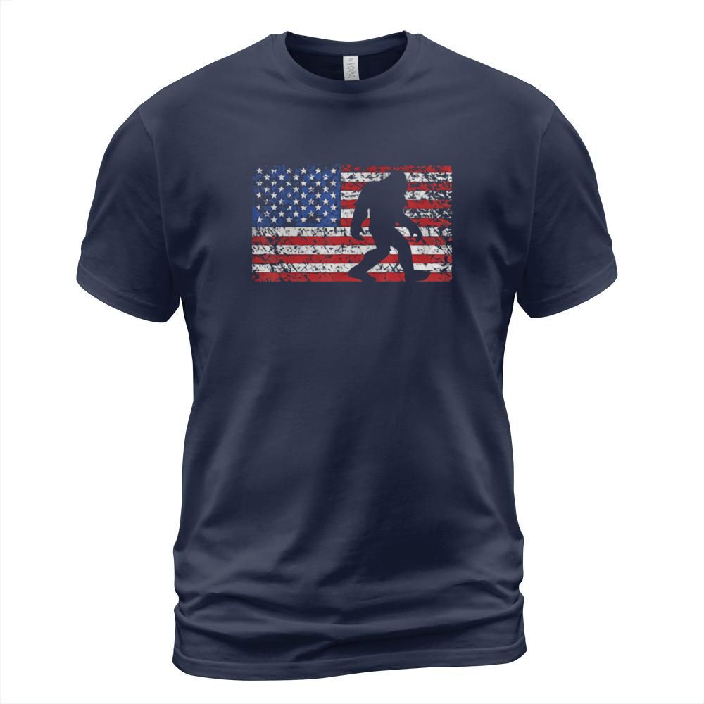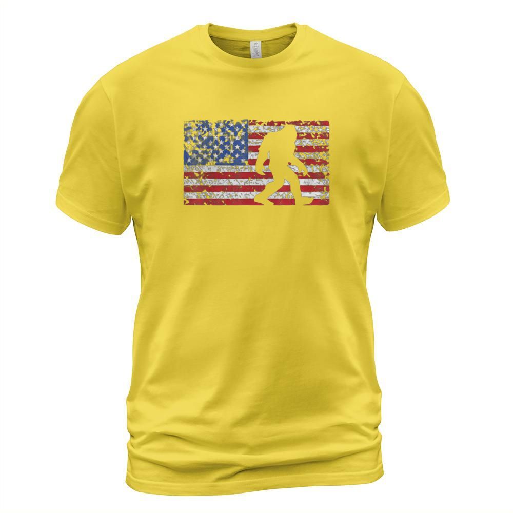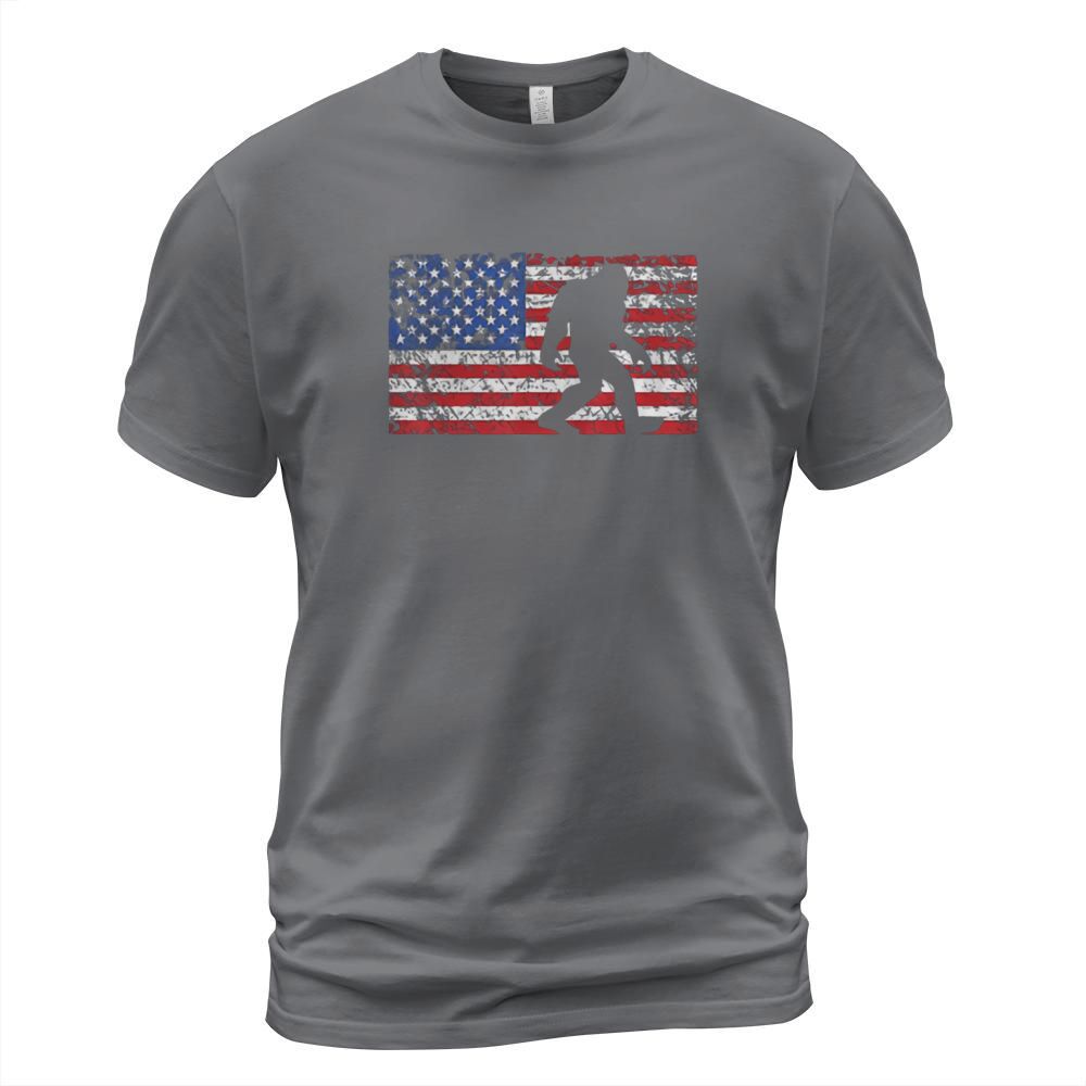 Shop American Flag Bigfoot T-Shirt Unisex custom made just for you. Available on many styles, sizes, and colors.