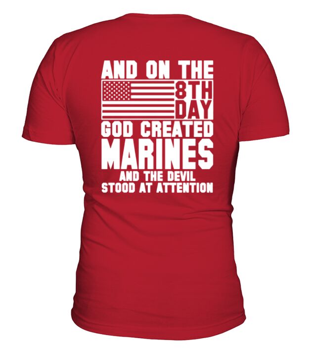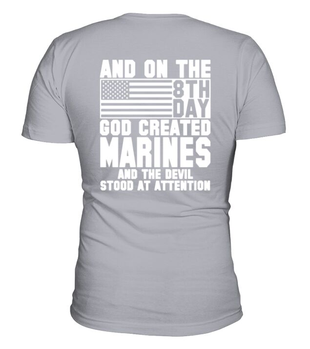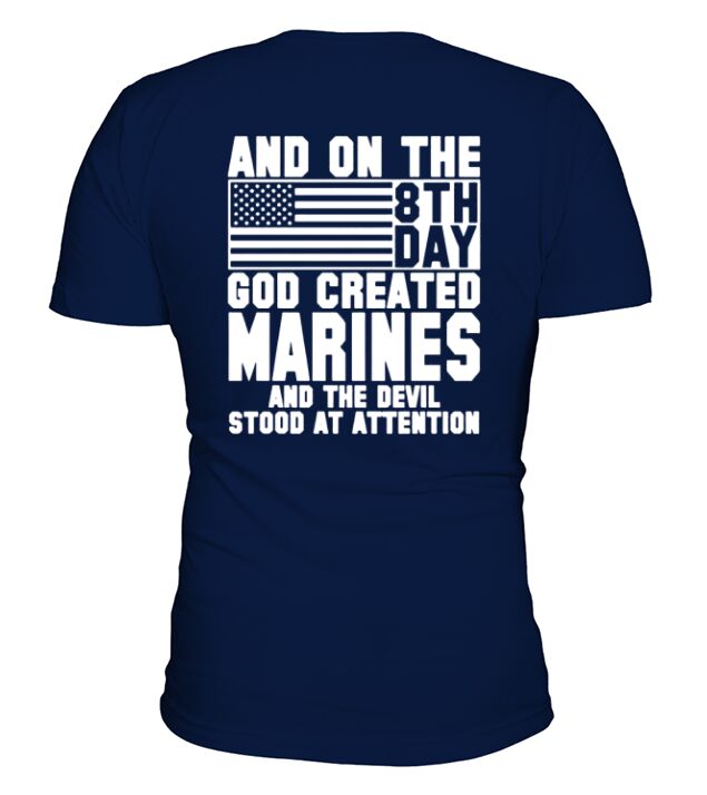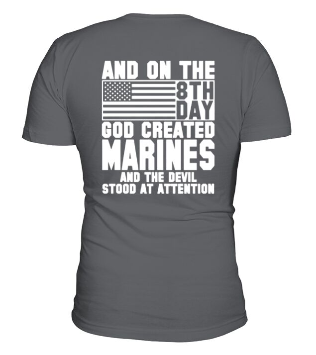 Shop AND ON THE 8TH DAY GOD CREATED marines AND THE EVIL STOOD AT ATTENTION V-Neck T-shirt custom made just for you. Available on many styles, sizes, and colors.