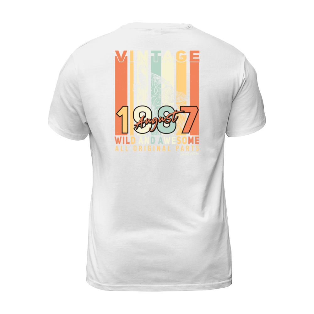 Shop August 1987 Birthday Greeting T-Shirt Unisex custom made just for you. Available on many styles, sizes, and colors.