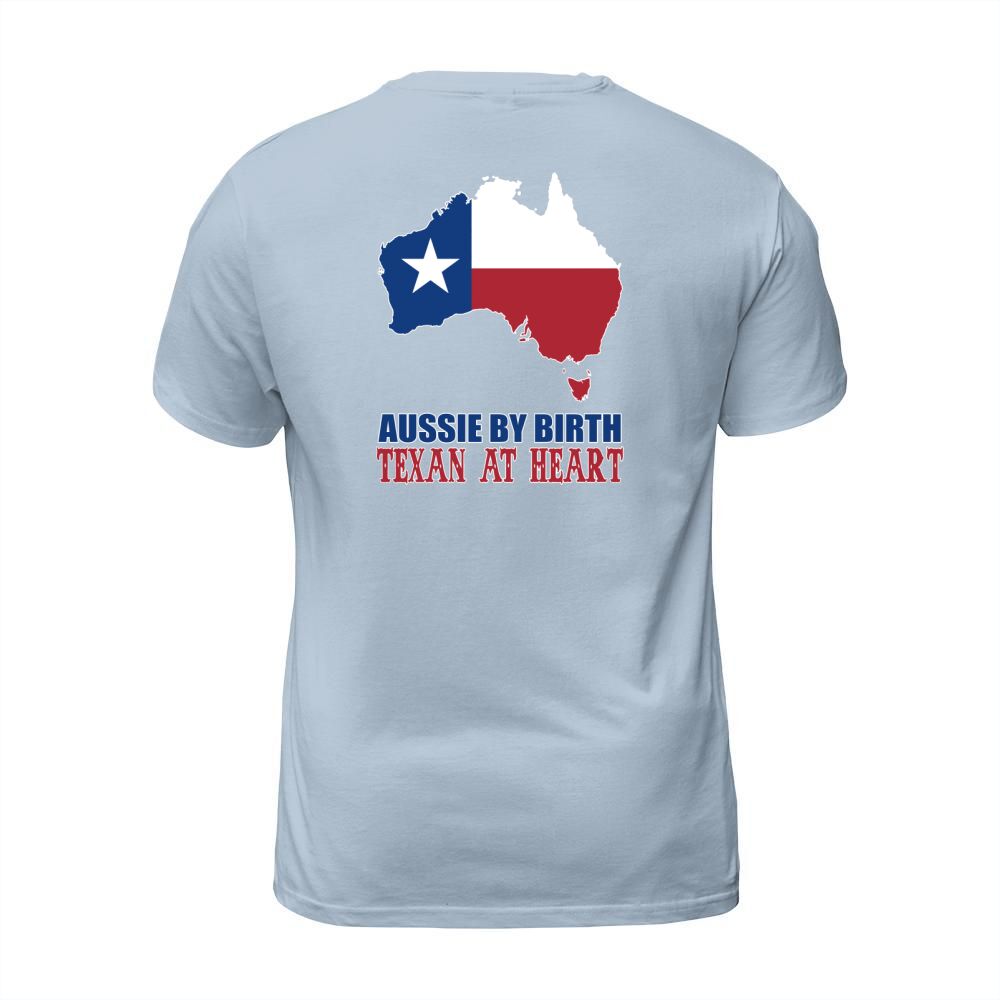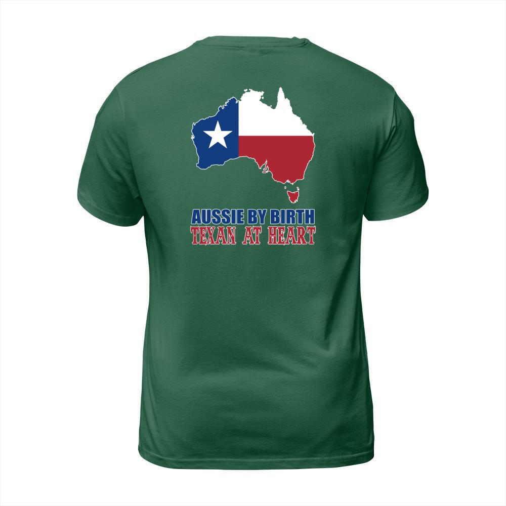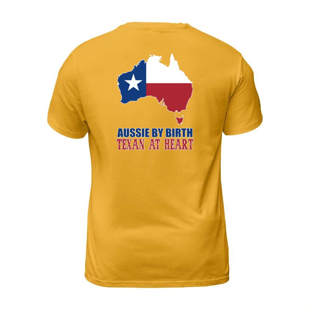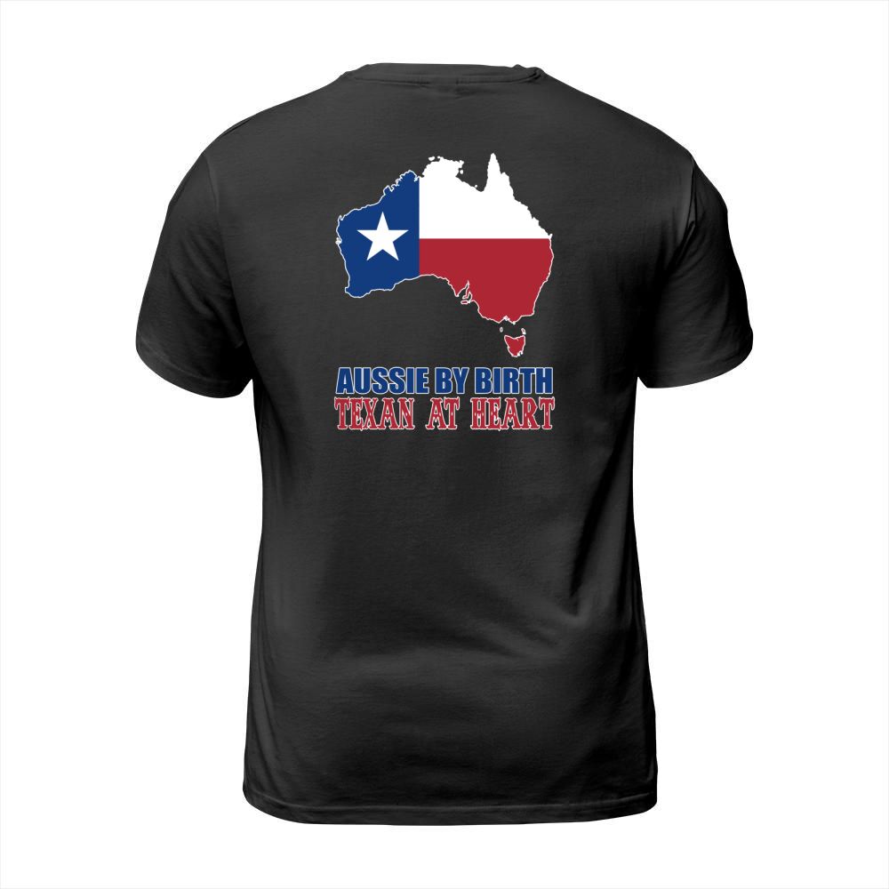 Shop Aussie By Birth Texan At Heart T-Shirt Unisex custom made just for you. Available on many styles, sizes, and colors.