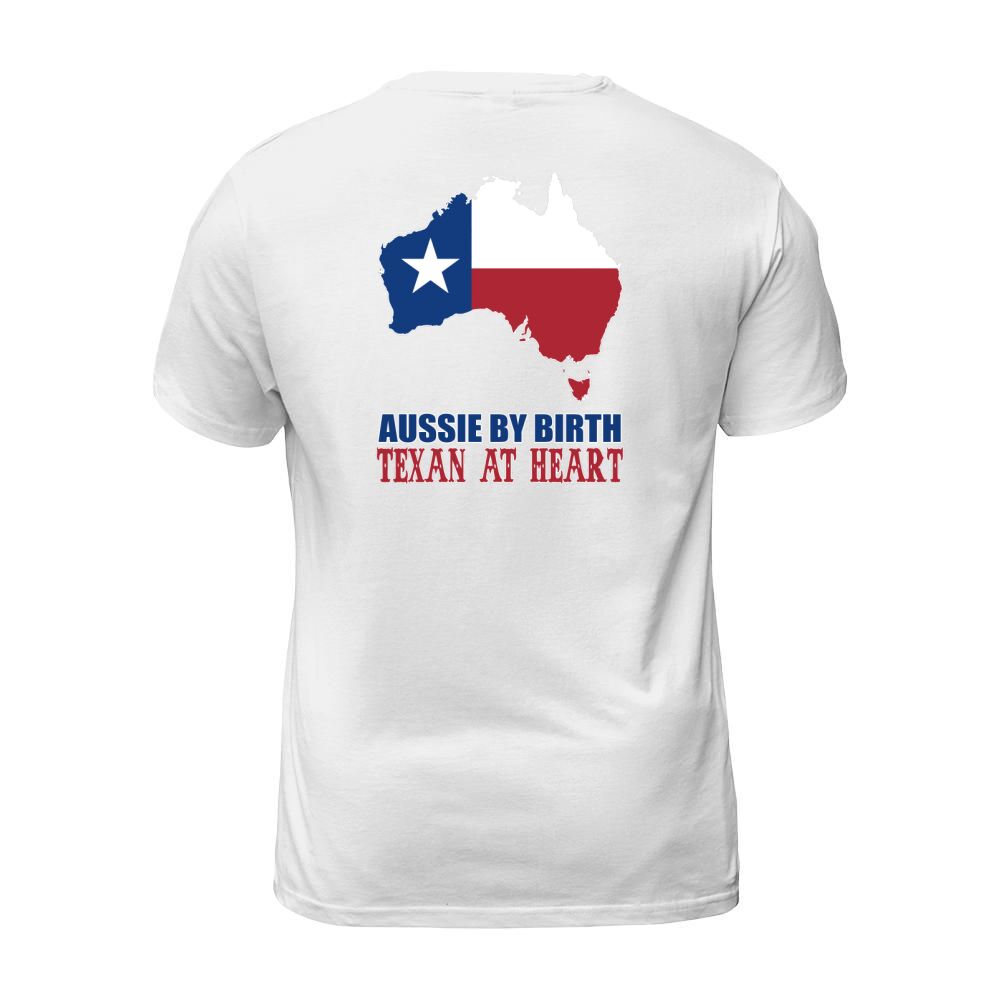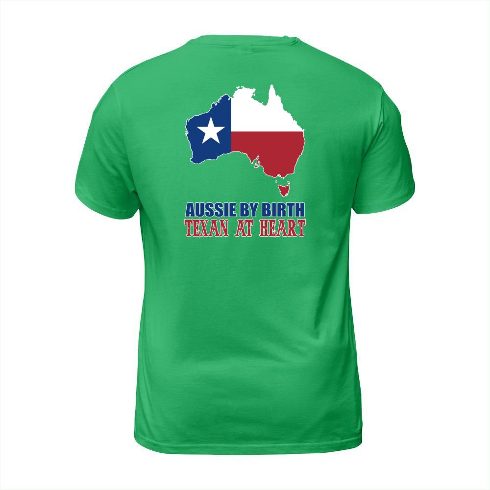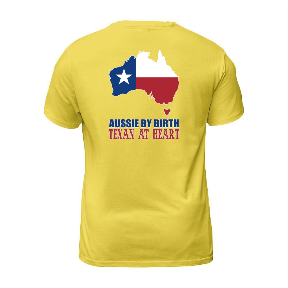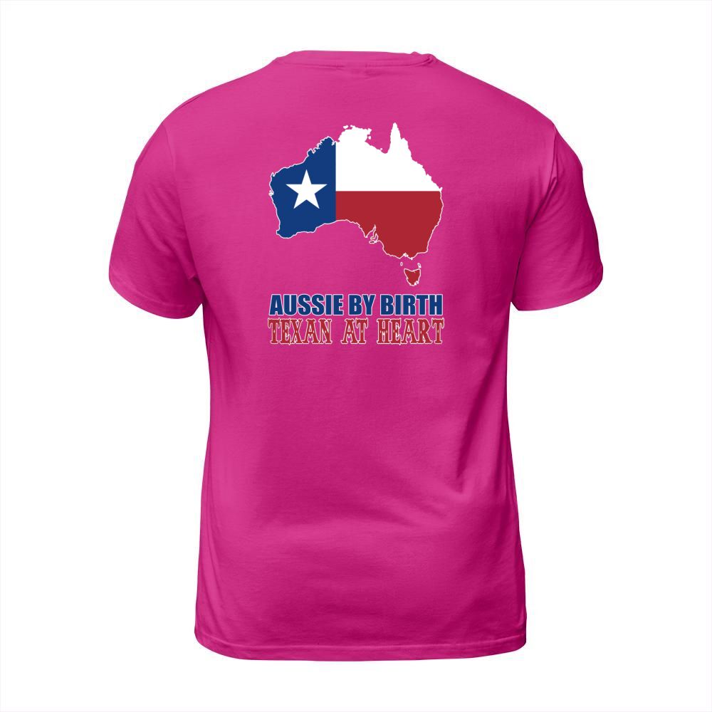 Shop Aussie By Birth Texan At Heart T-Shirt Unisex custom made just for you. Available on many styles, sizes, and colors.