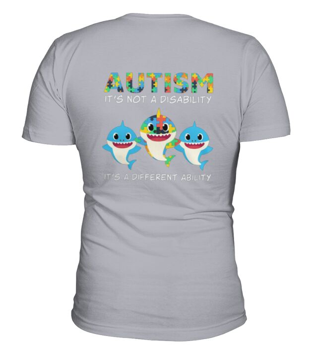 Shop Baby Sharks Autism its not a disability its a different ability V-Neck T-shirt custom made just for you. Available on many styles, sizes, and colors.