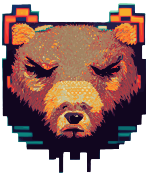 Bear Head Pixel Art 8 Bit Retro Video Game