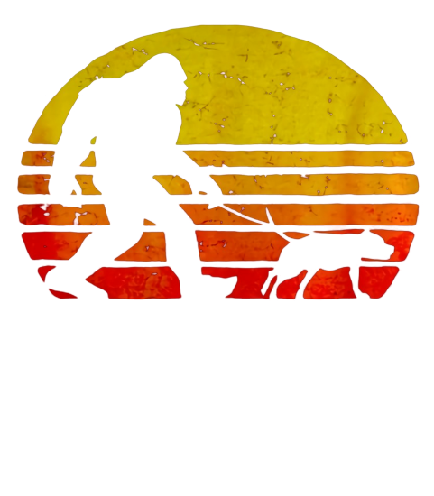Bigfoot walking Pitbull Dog Sunset