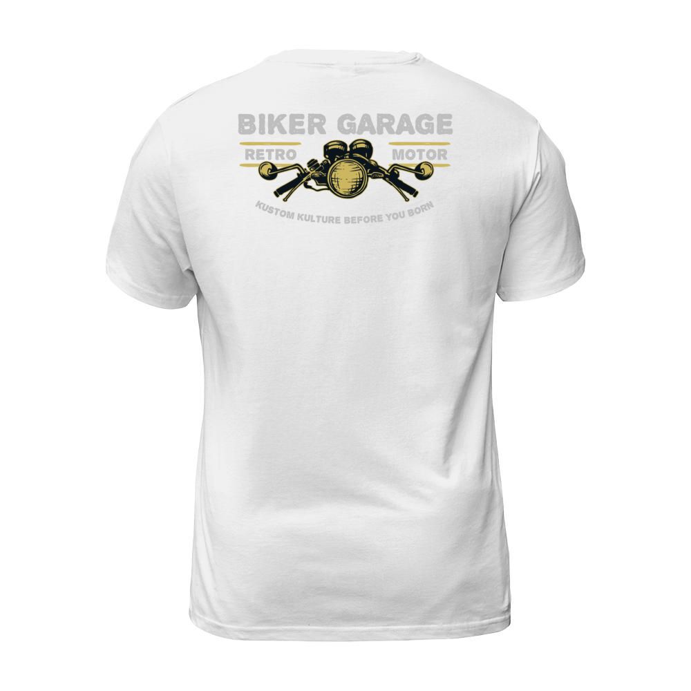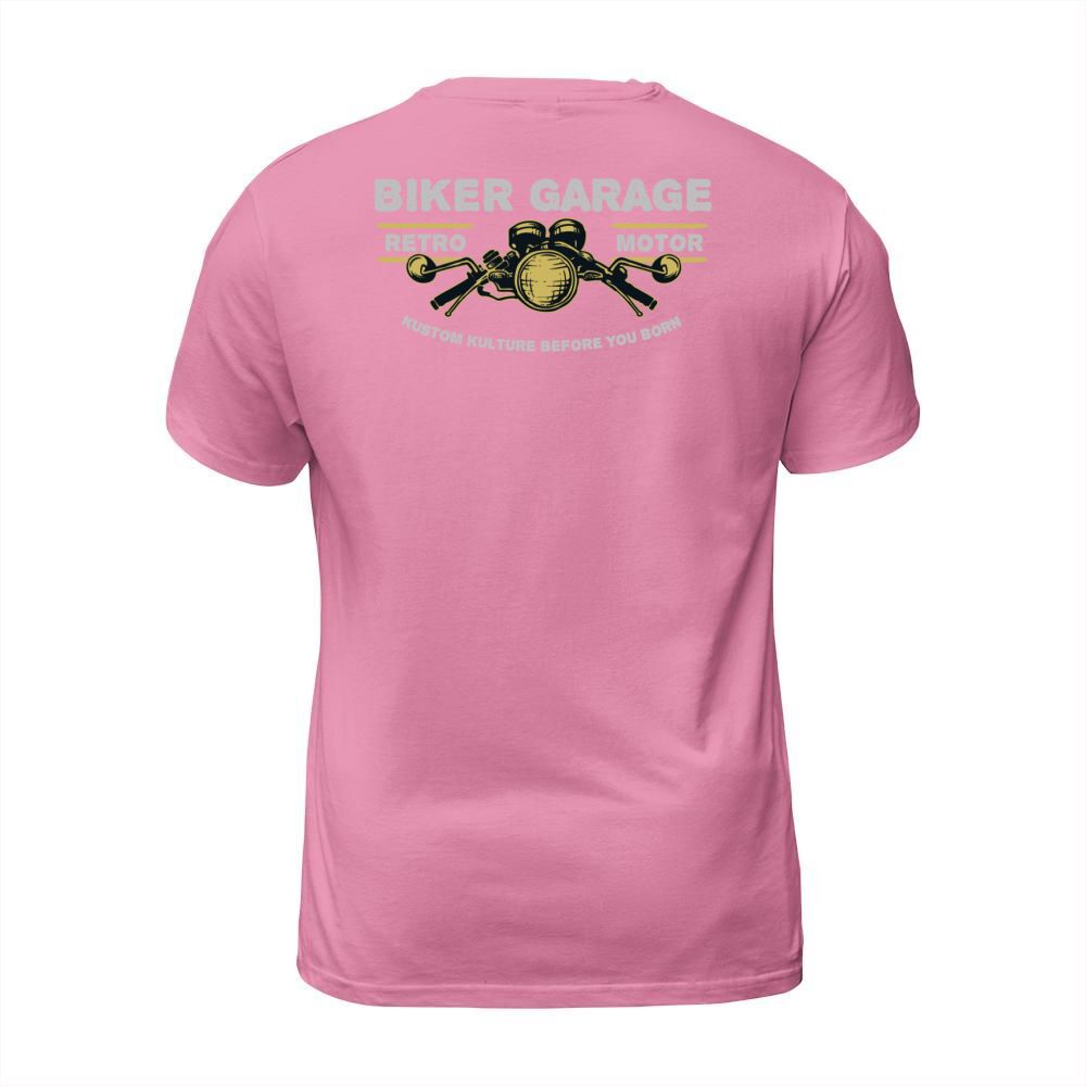 Shop Biker Garage T-Shirt Unisex custom made just for you. Available on many styles, sizes, and colors.