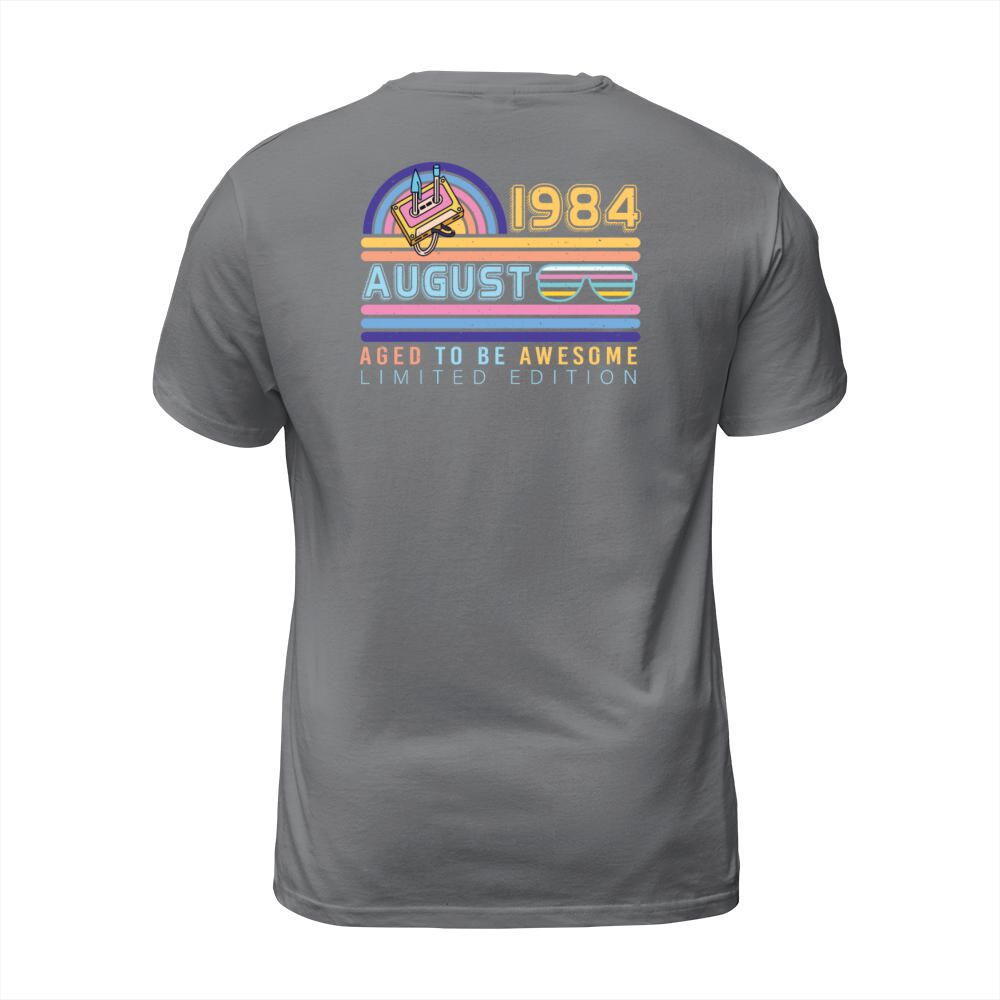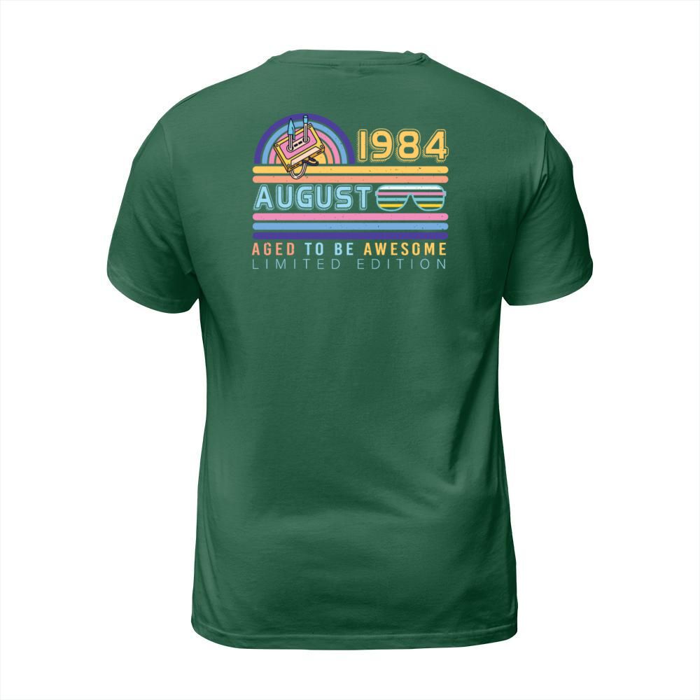 Shop Birthday Greeting August 1984 T-Shirt Unisex custom made just for you. Available on many styles, sizes, and colors.