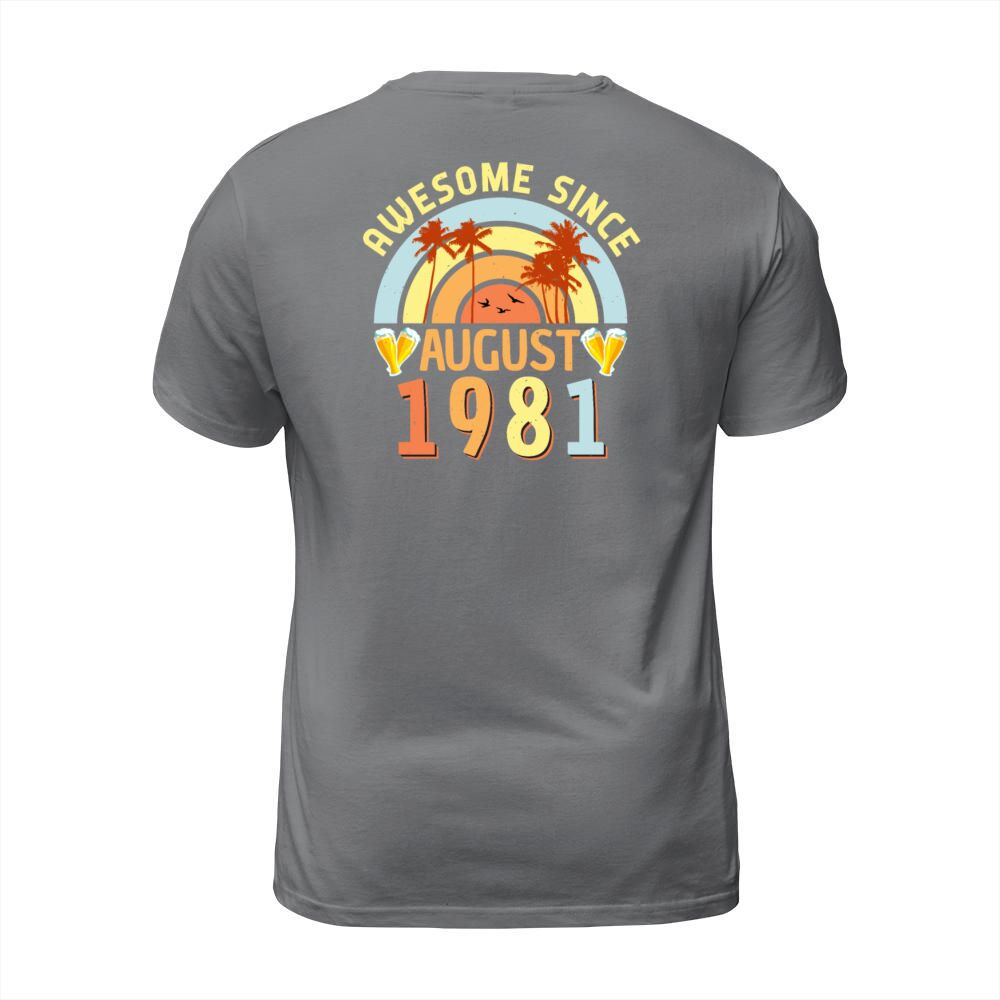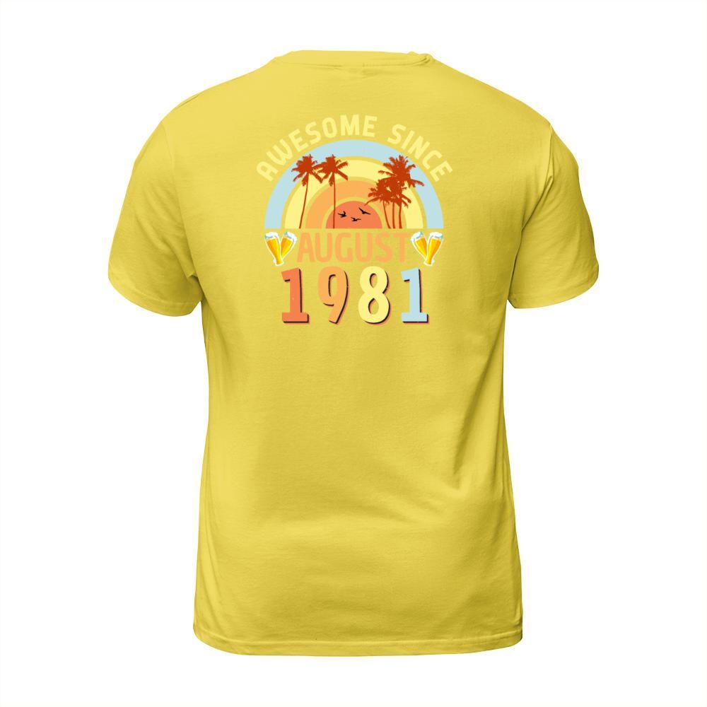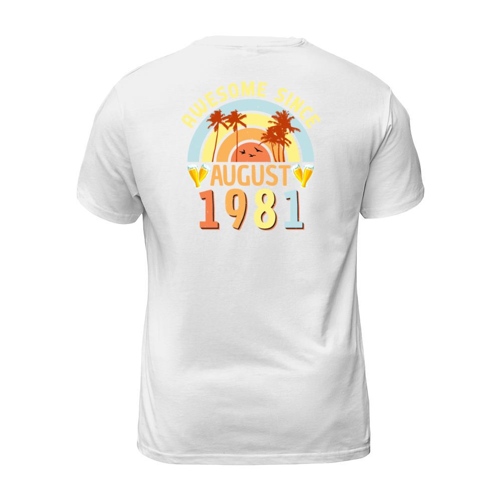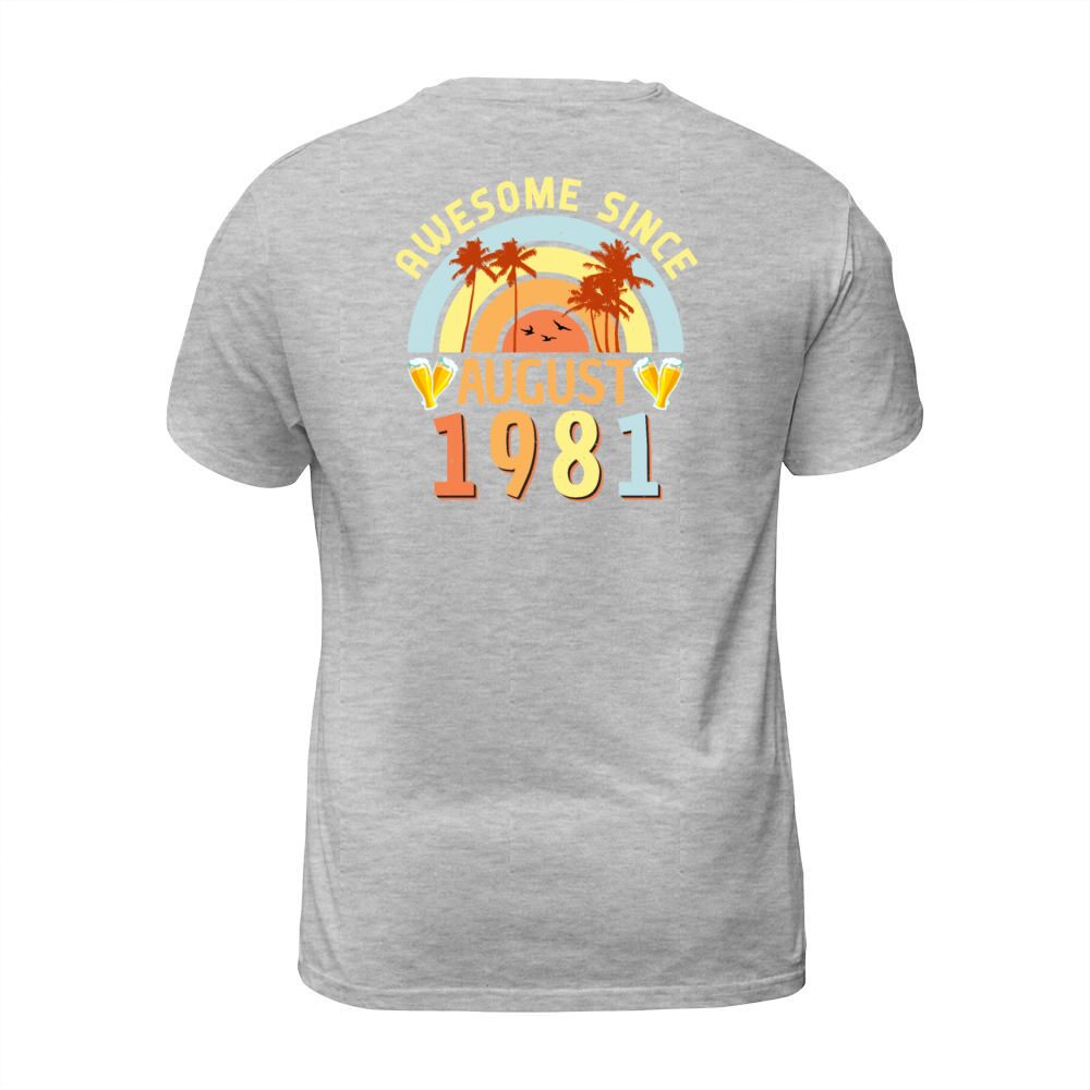 Shop Birthday Greeting For August 1981 T-Shirt Unisex custom made just for you. Available on many styles, sizes, and colors.
