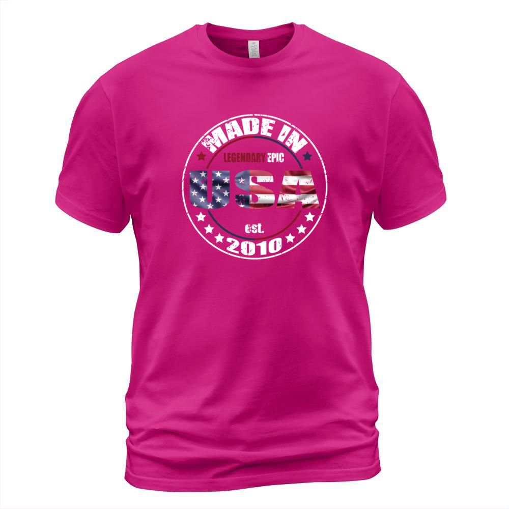 Shop Birthday Saying Born USA 2010 T-Shirt Unisex custom made just for you. Available on many styles, sizes, and colors.