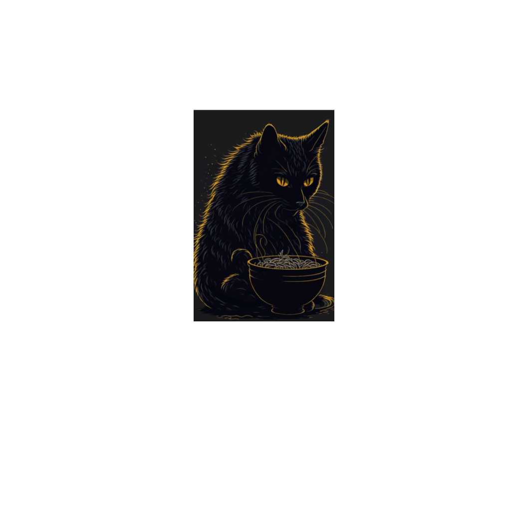 Black Cat Eating Ramen