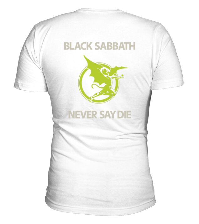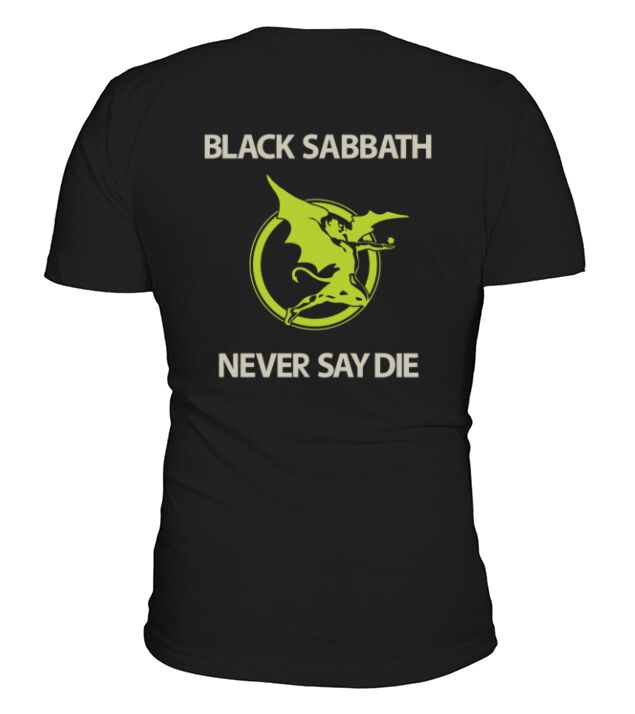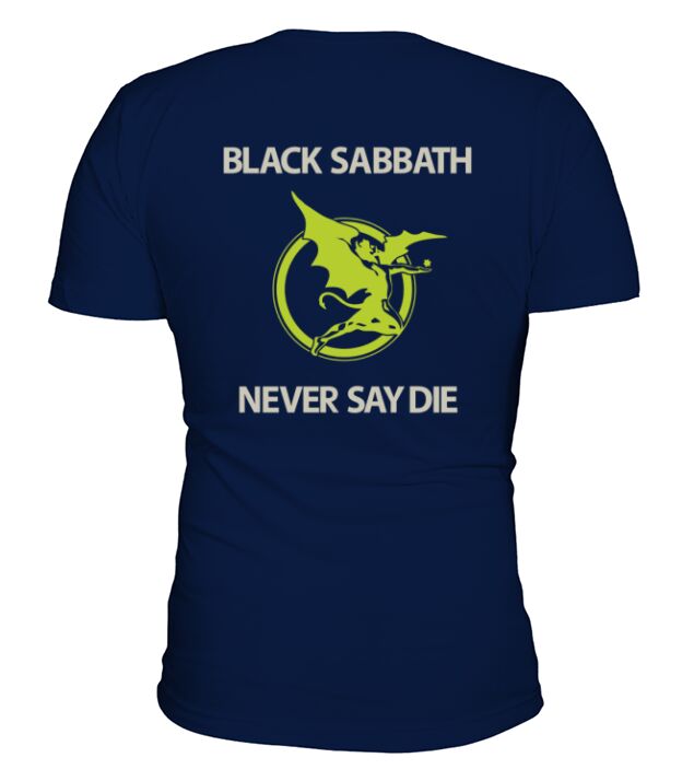Shop Black Sabbath Never Say Die V-Neck T-shirt custom made just for you. Available on many styles, sizes, and colors.