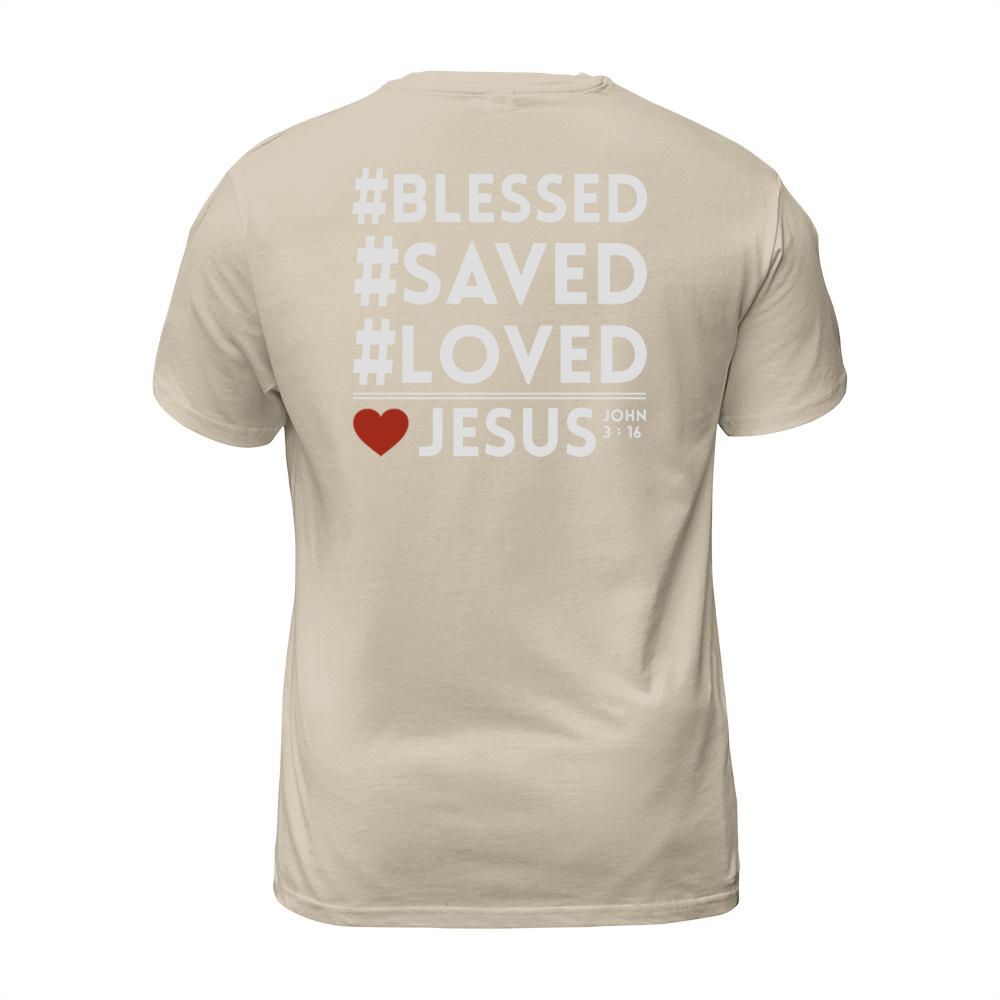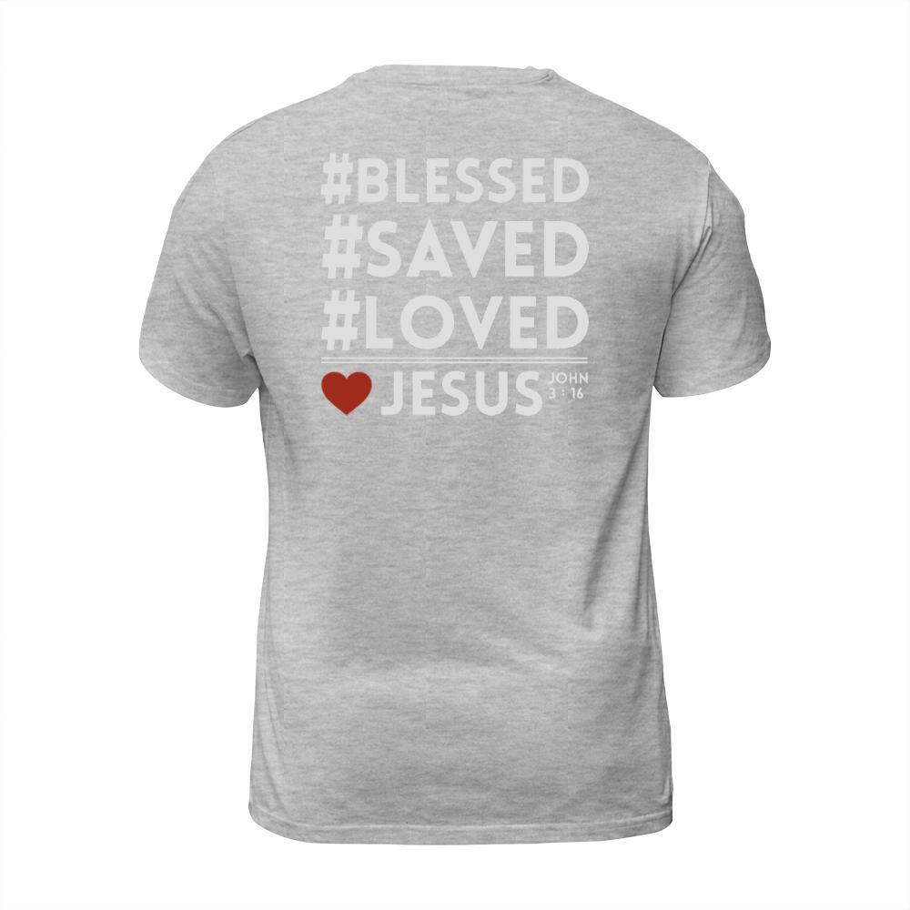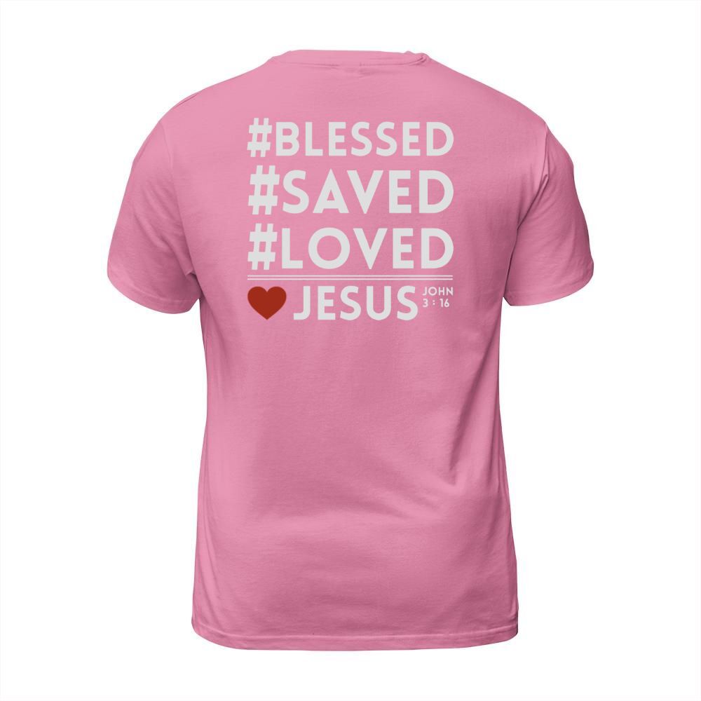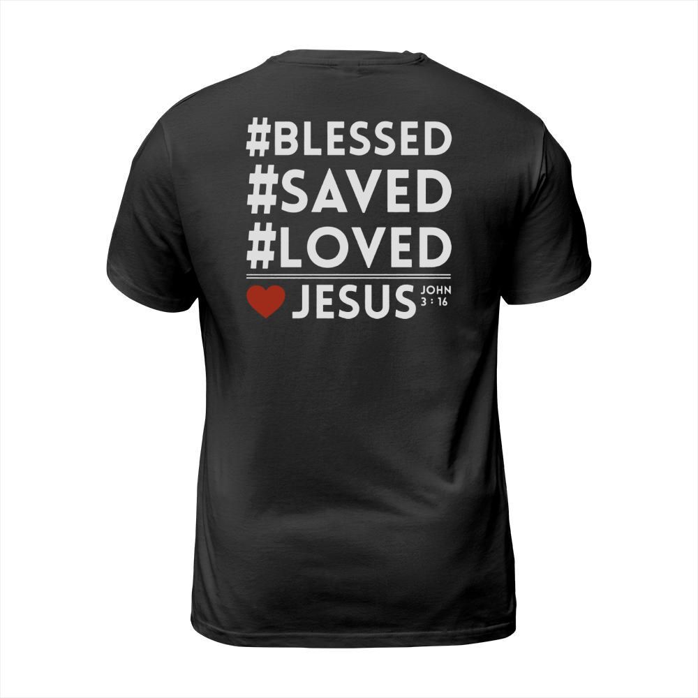 Shop BLESS SAVED LOVED JESUS T-Shirt Unisex custom made just for you. Available on many styles, sizes, and colors.
