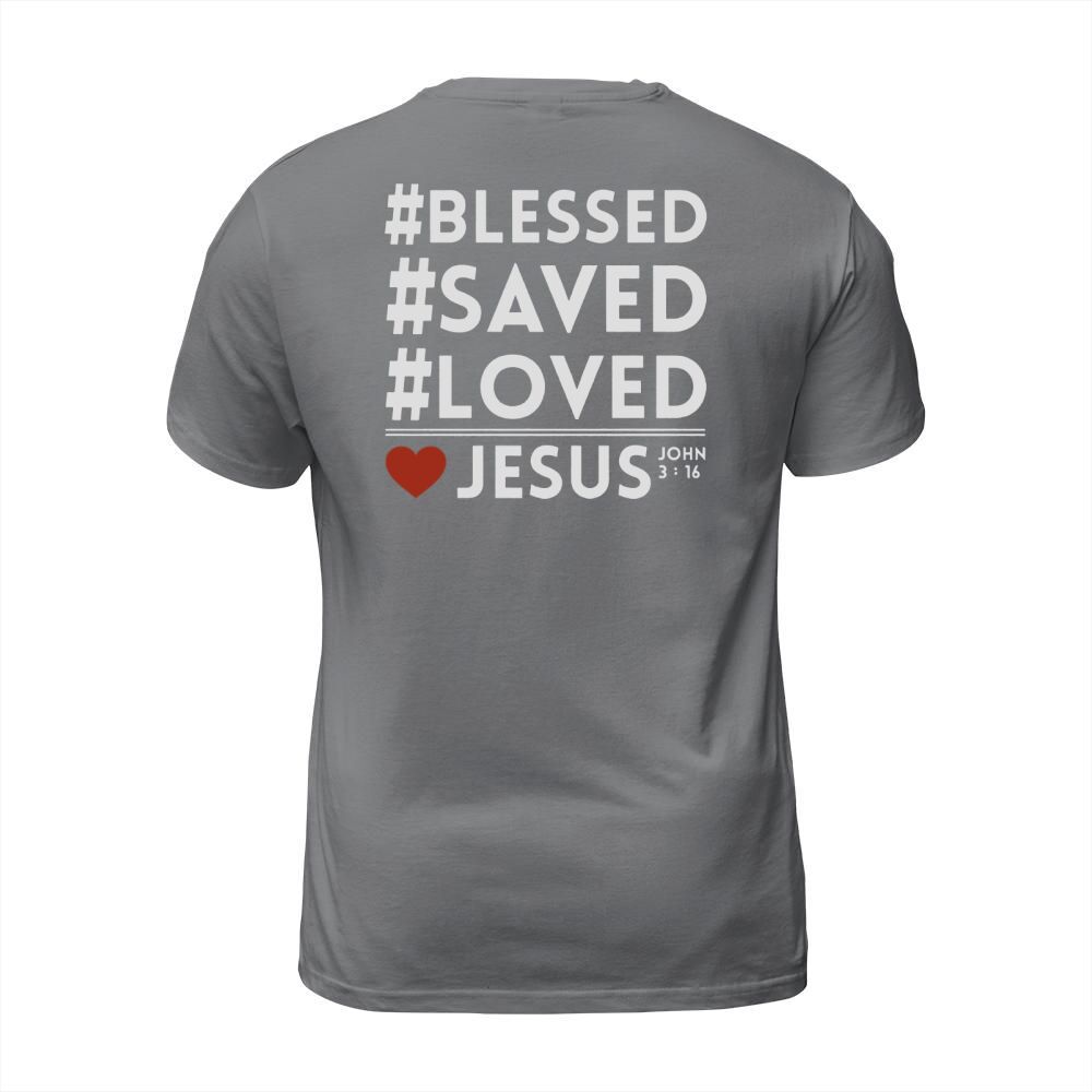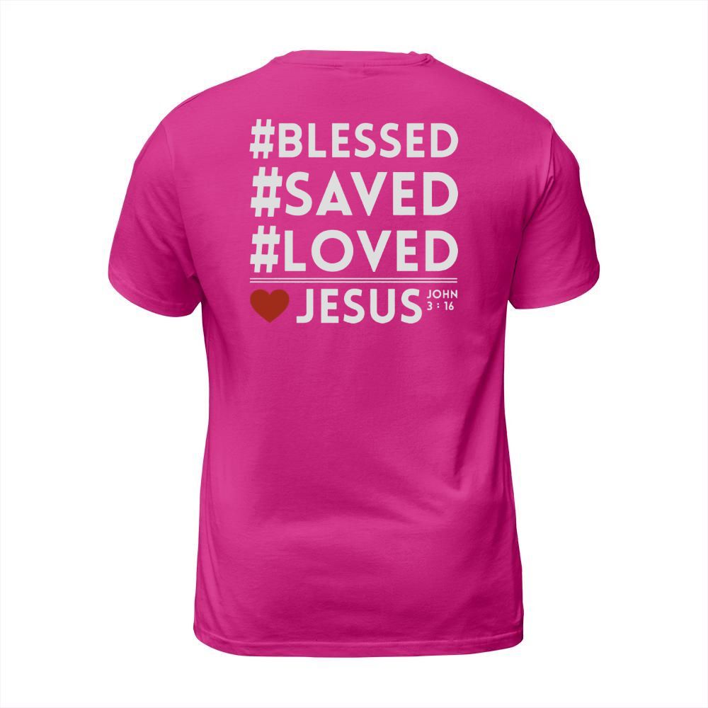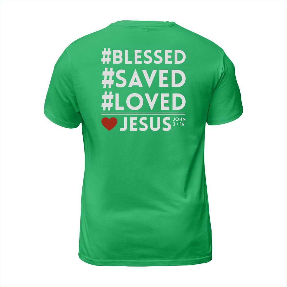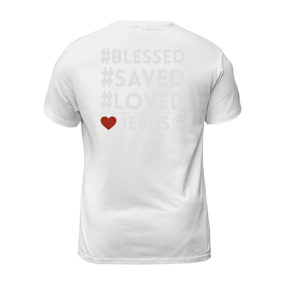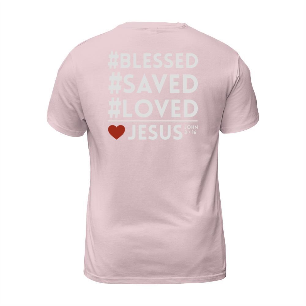 Shop BLESS SAVED LOVED JESUS T-Shirt Unisex custom made just for you. Available on many styles, sizes, and colors.