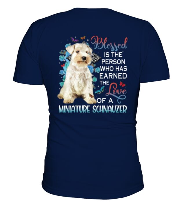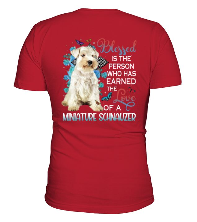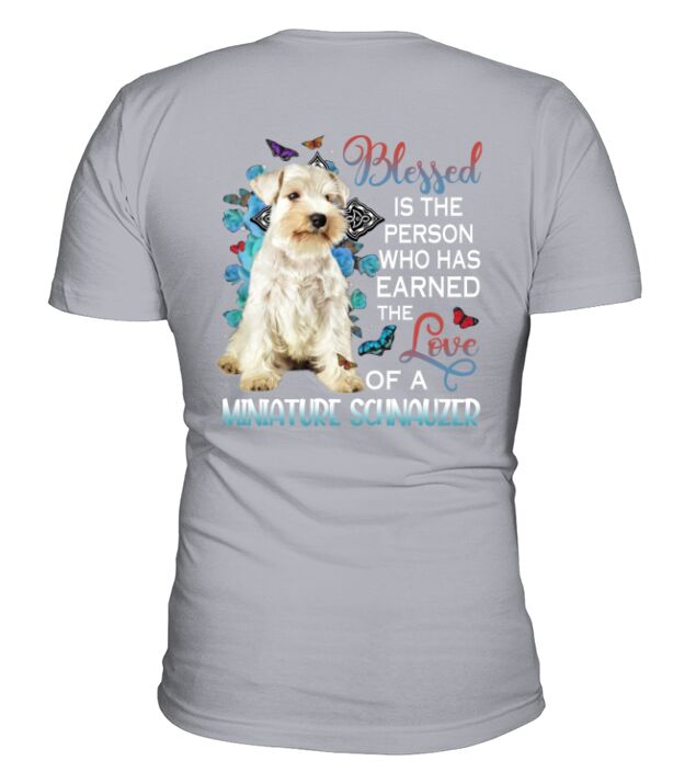 Shop Blessed White Miniature Schnauzer V-Neck T-shirt custom made just for you. Available on many styles, sizes, and colors.