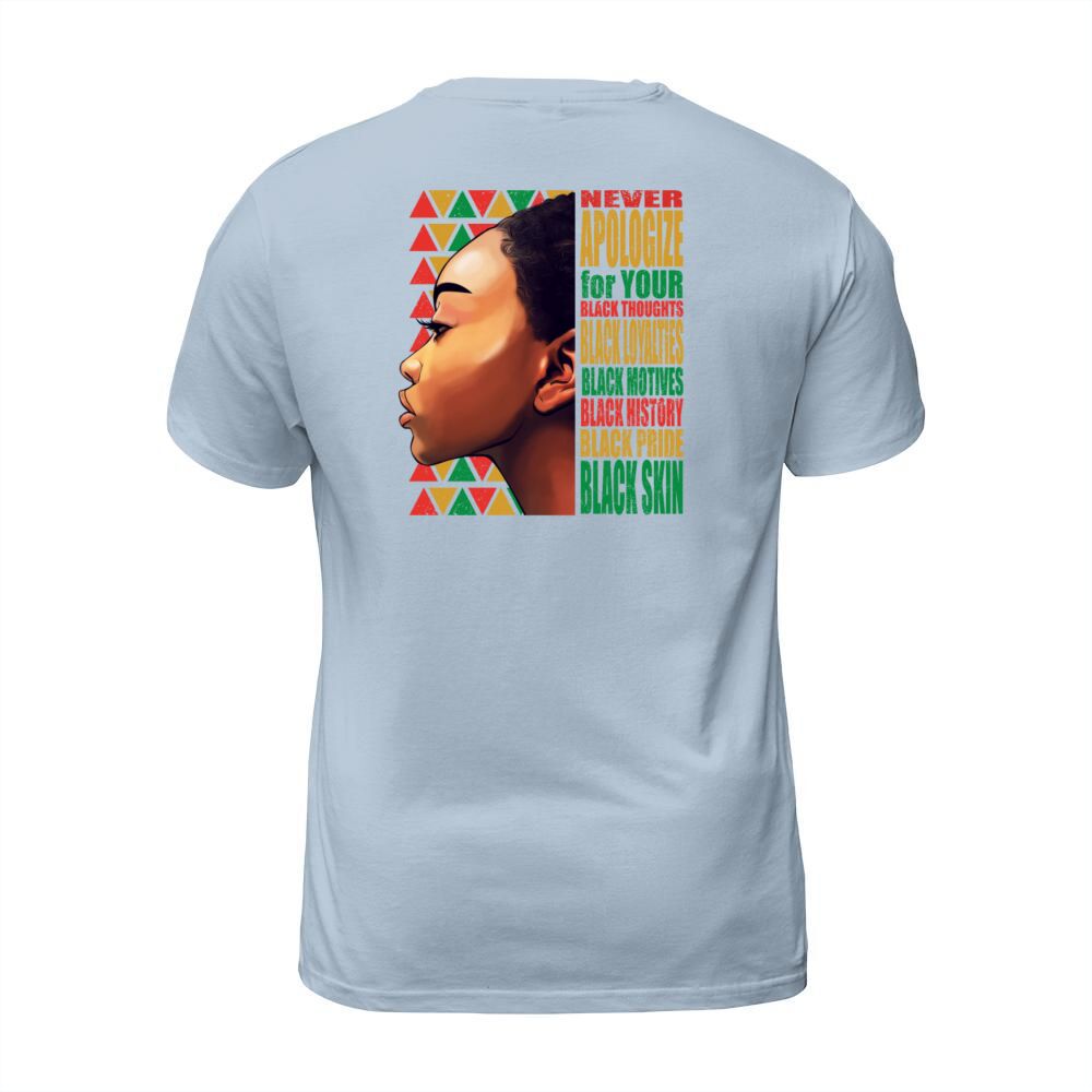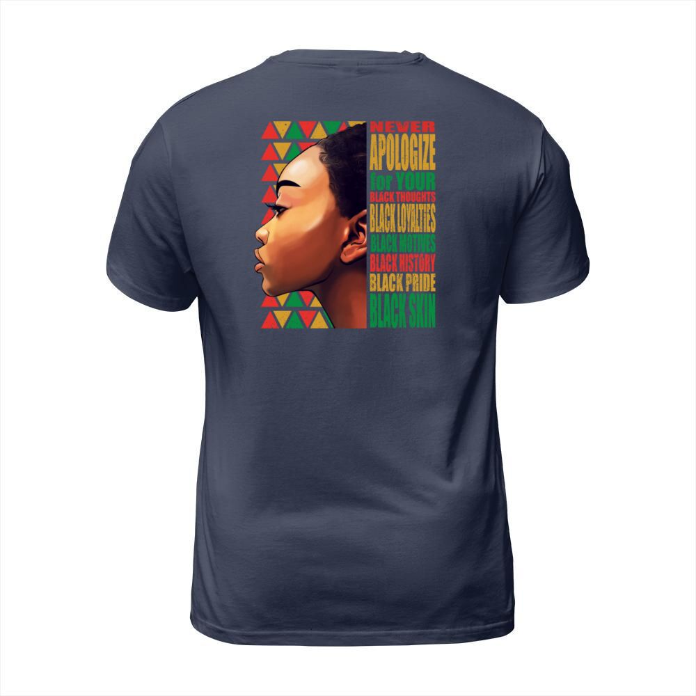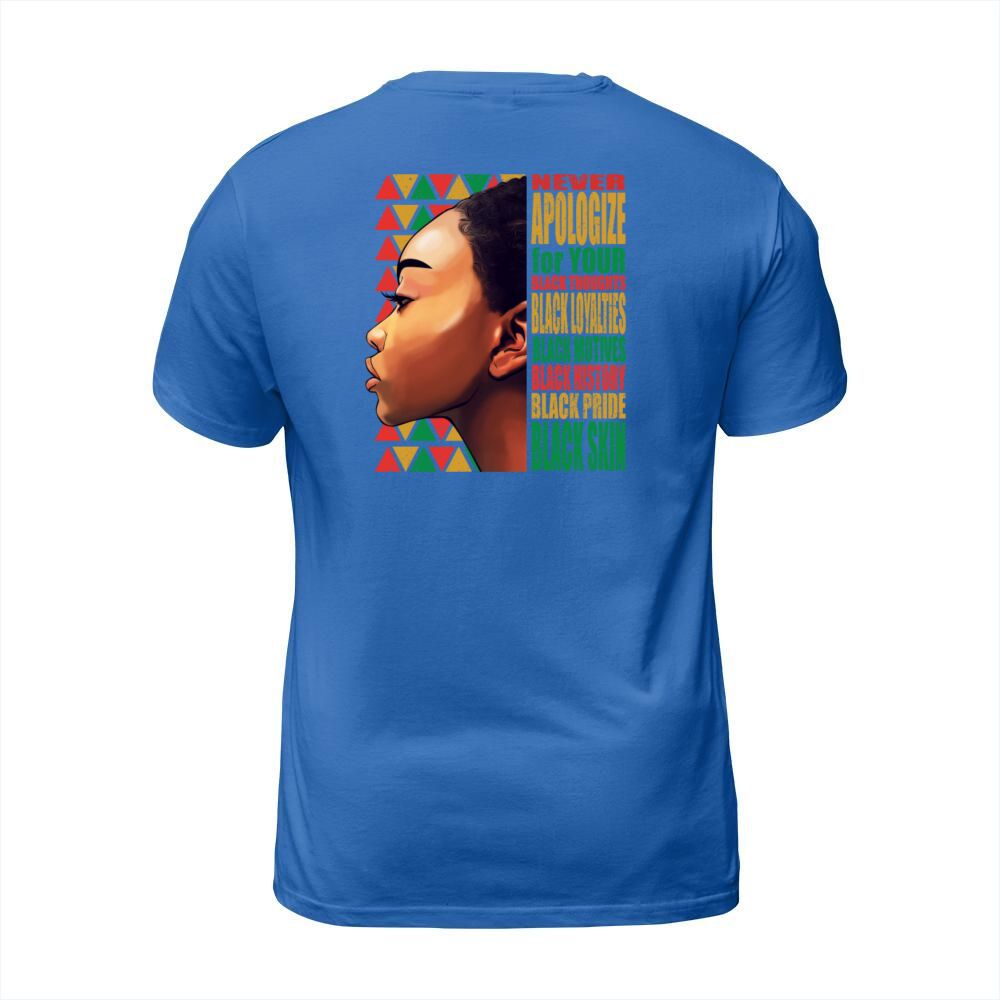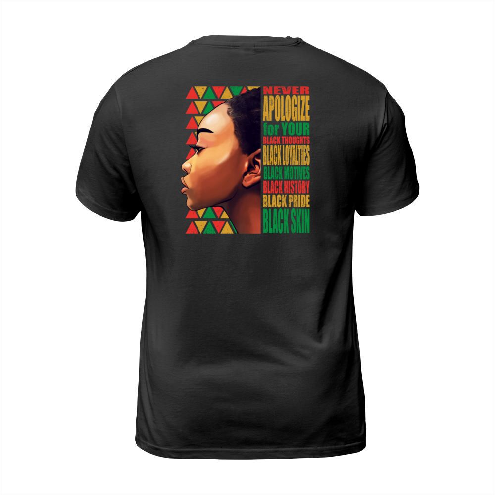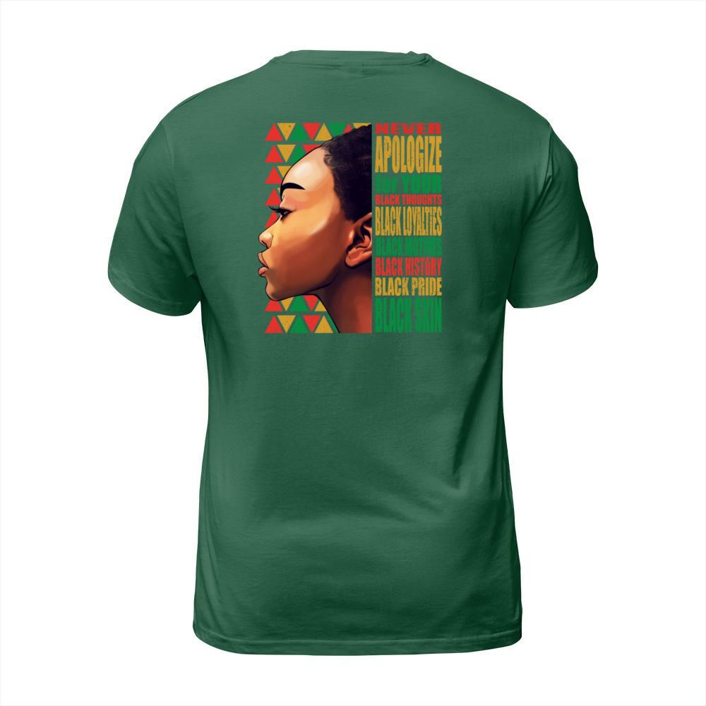 Shop BLM Melanin Pride Never Apologize Black History T-Shirt Unisex custom made just for you. Available on many styles, sizes, and colors.