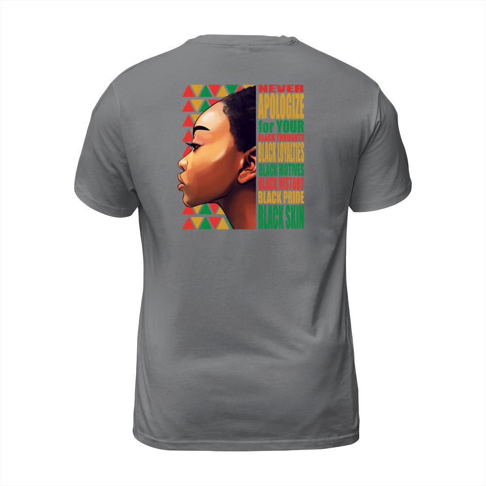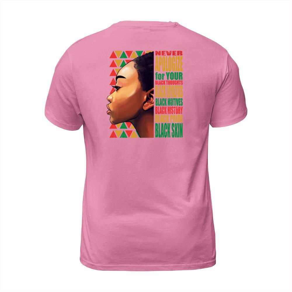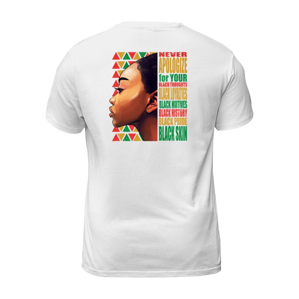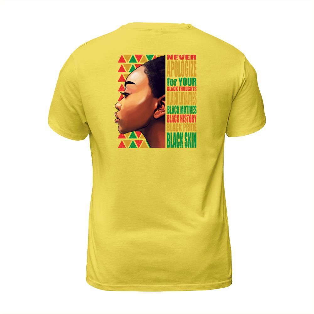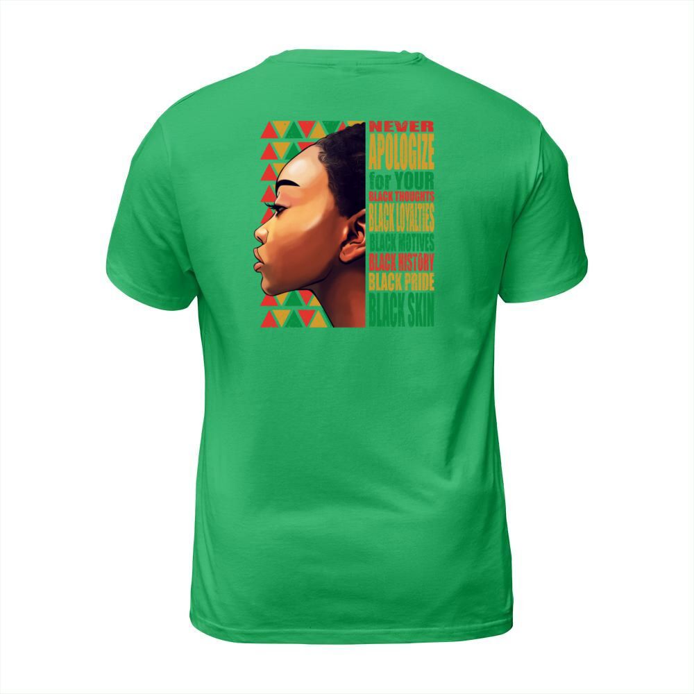 Shop BLM Melanin Pride Never Apologize Black History T-Shirt Unisex custom made just for you. Available on many styles, sizes, and colors.