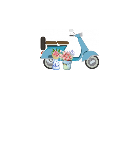 Blue Retro Scooter With Tulips Art Design