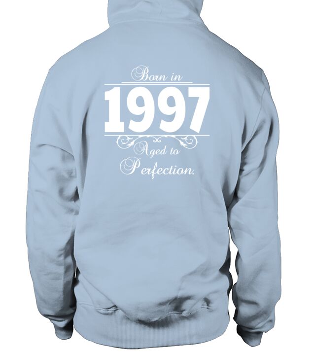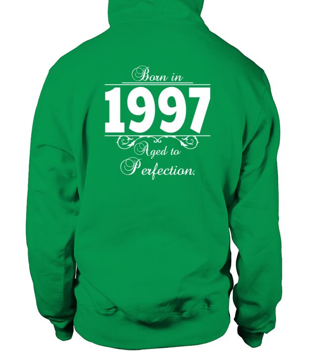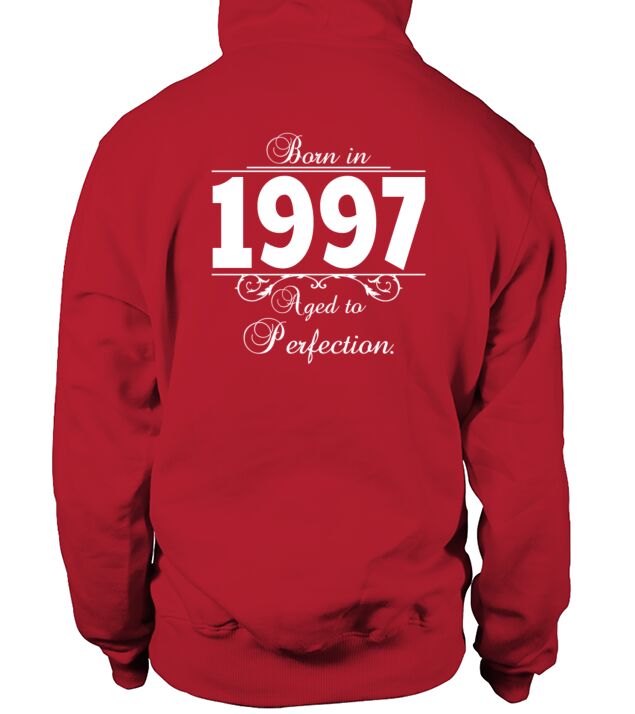 Shop Born in Age 1997 birthday Men's Hoodie custom made just for you. Available on many styles, sizes, and colors.