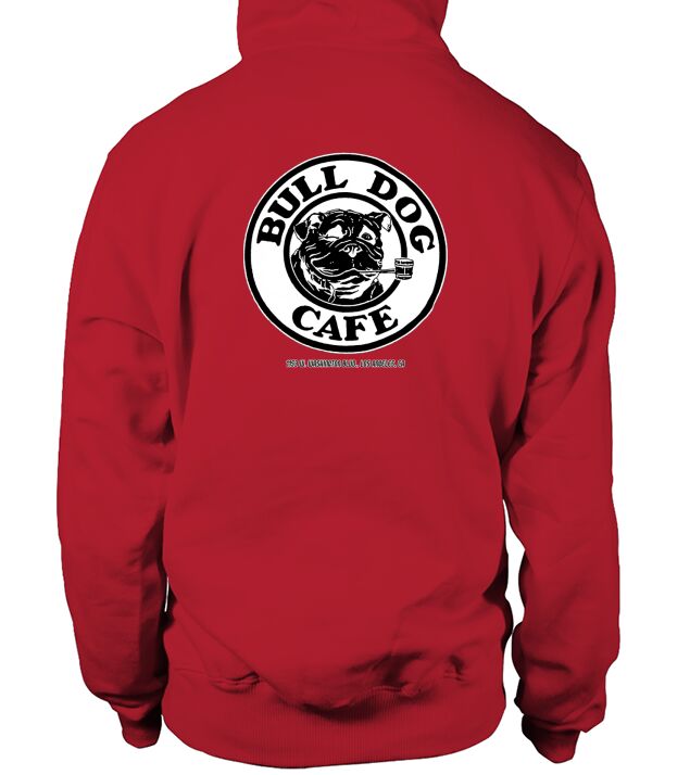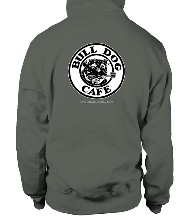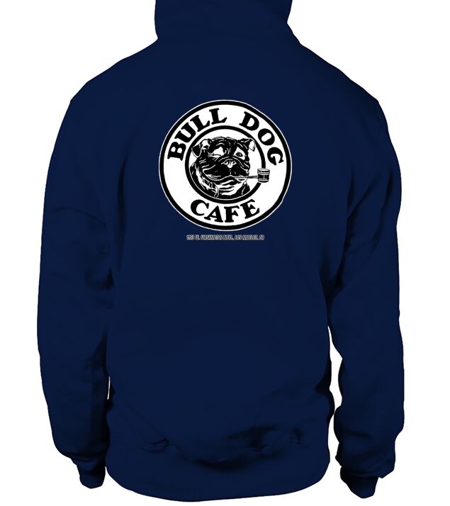Shop Bulldog cafe Hoodie Unisex custom made just for you. Available on many styles, sizes, and colors.