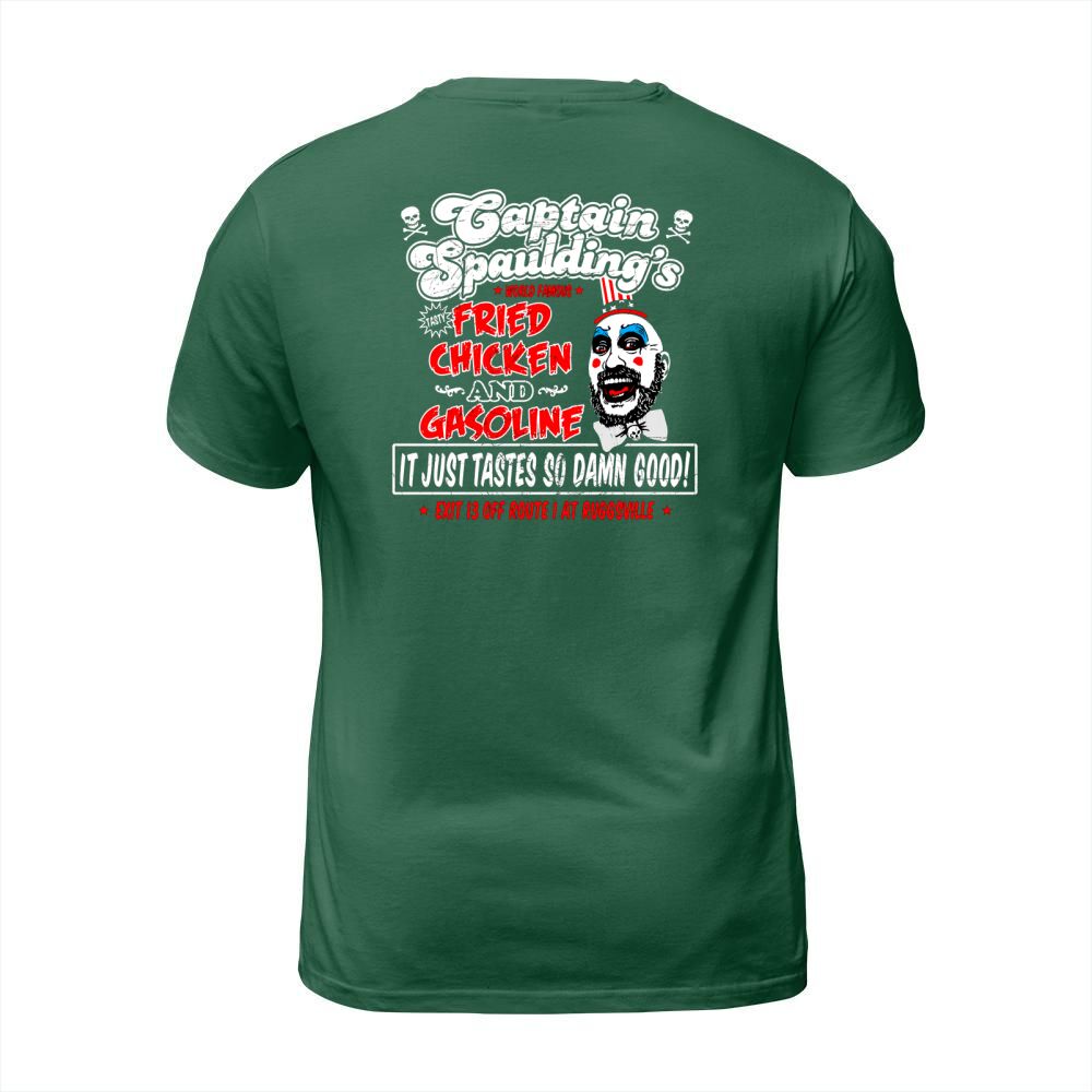 Shop Captain Spaulding’s Fried Chicken and Gasoline it just tastes T-Shirt Unisex custom made just for you. Available on many styles, sizes, and colors.