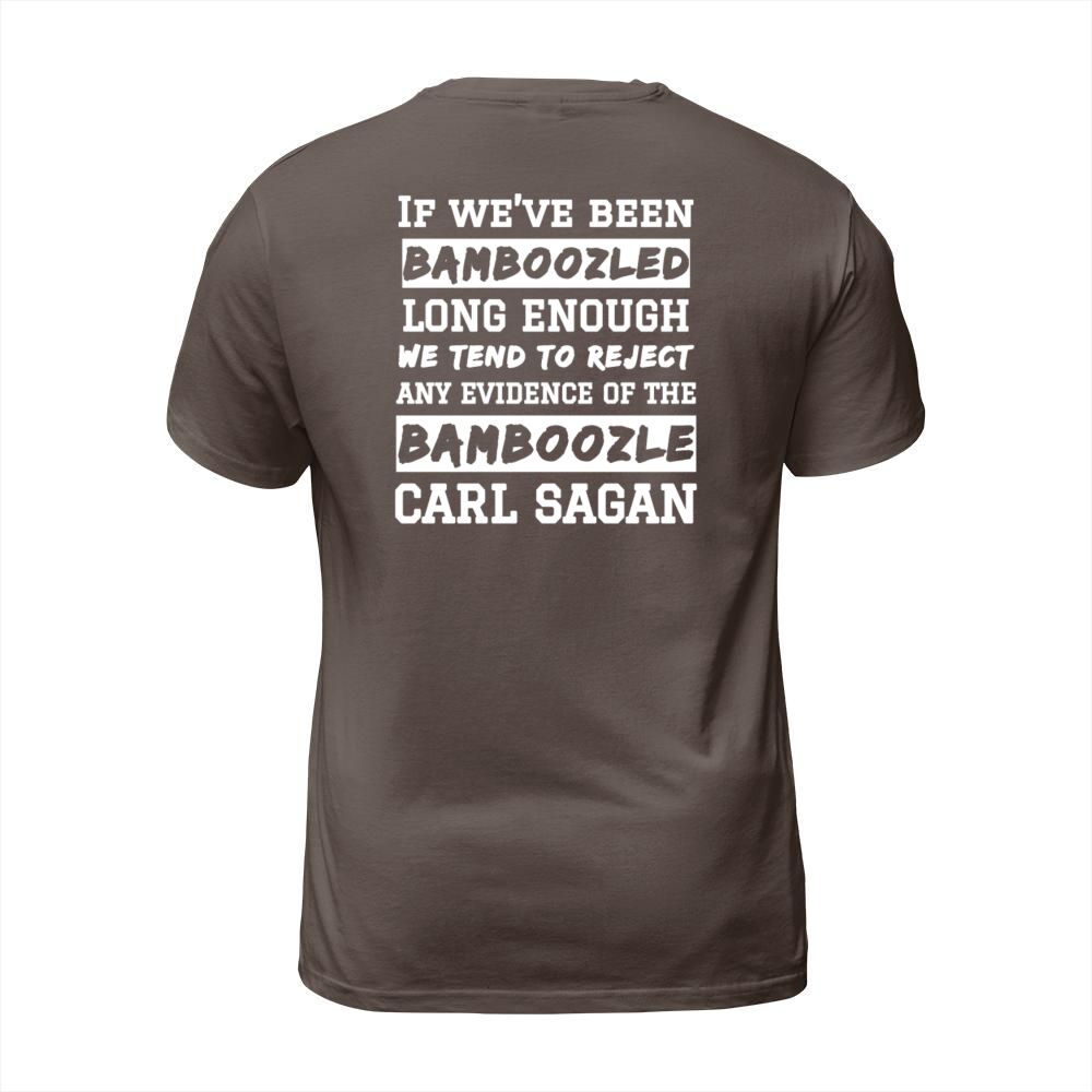 Shop Carl Sagan Bamboozled Quote T-Shirt Unisex custom made just for you. Available on many styles, sizes, and colors.