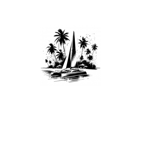 Catamaran Double Hull Sailing Boat With Palm Trees