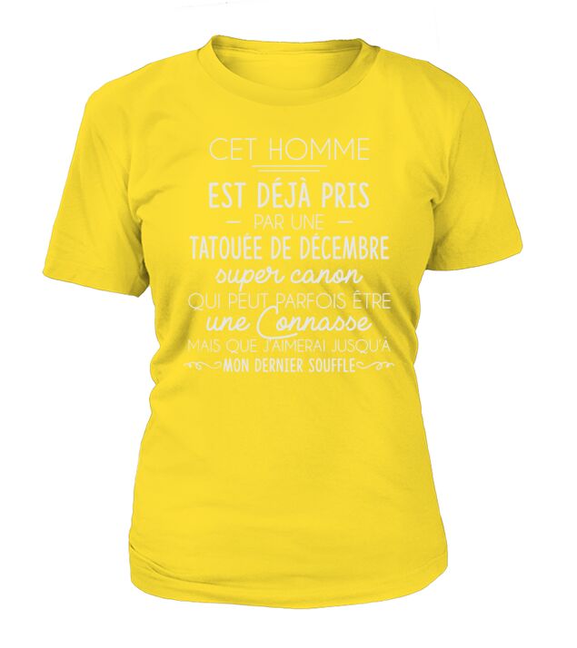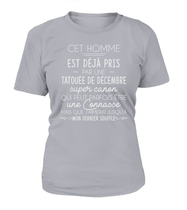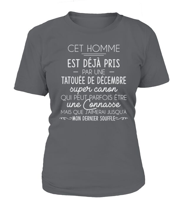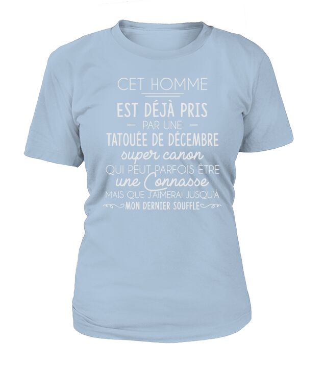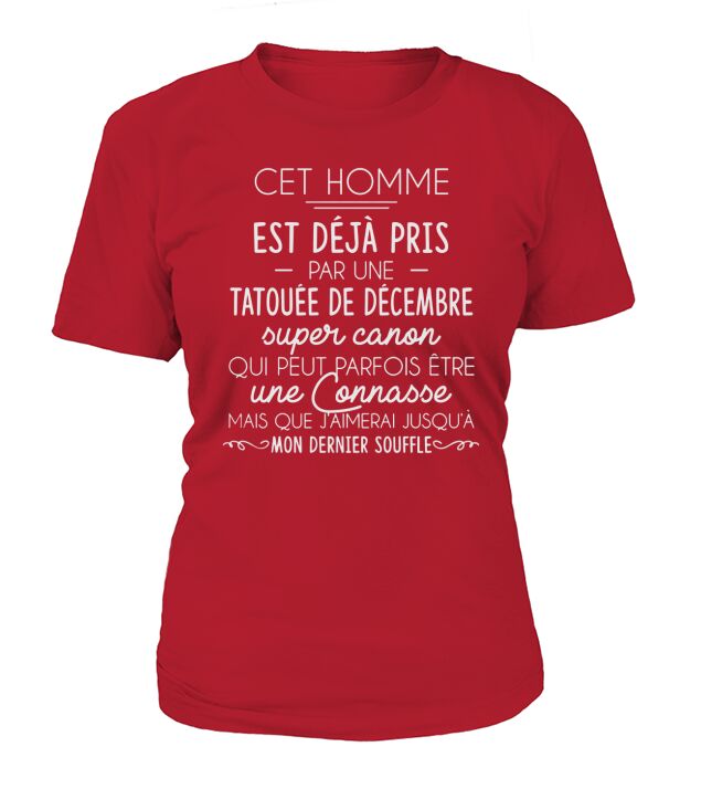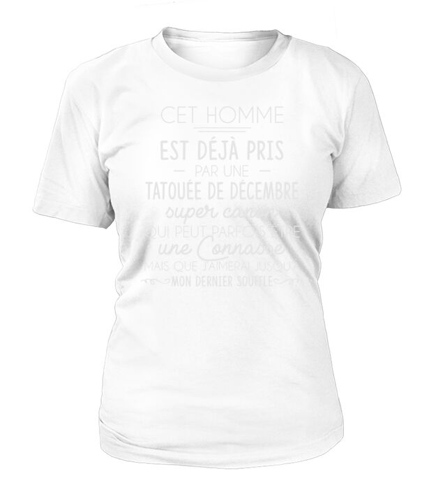 Shop CET HOMME EST DEJA PRIS PAR UNE TATOUEE DE DECEMBRE T-Shirt Woman custom made just for you. Available on many styles, sizes, and colors.