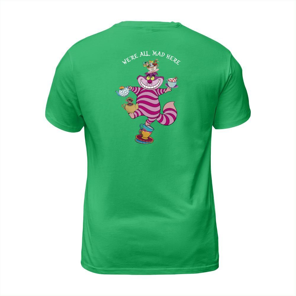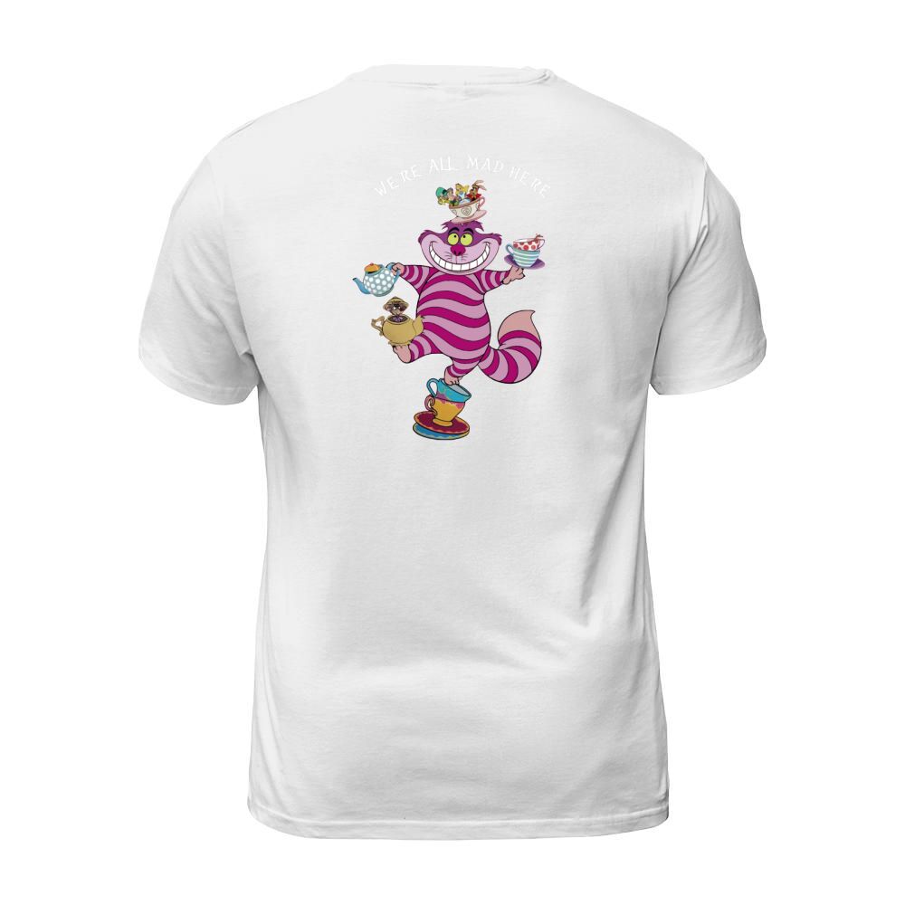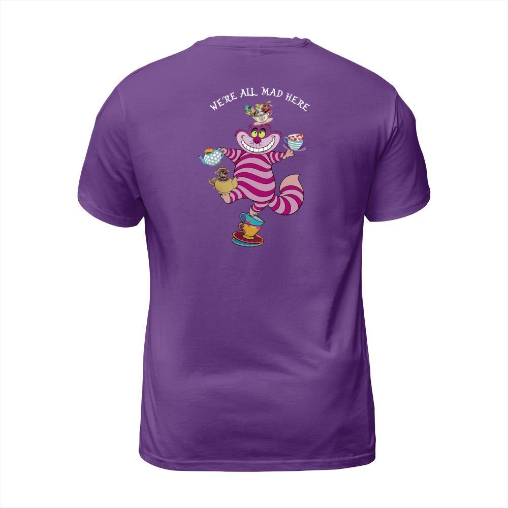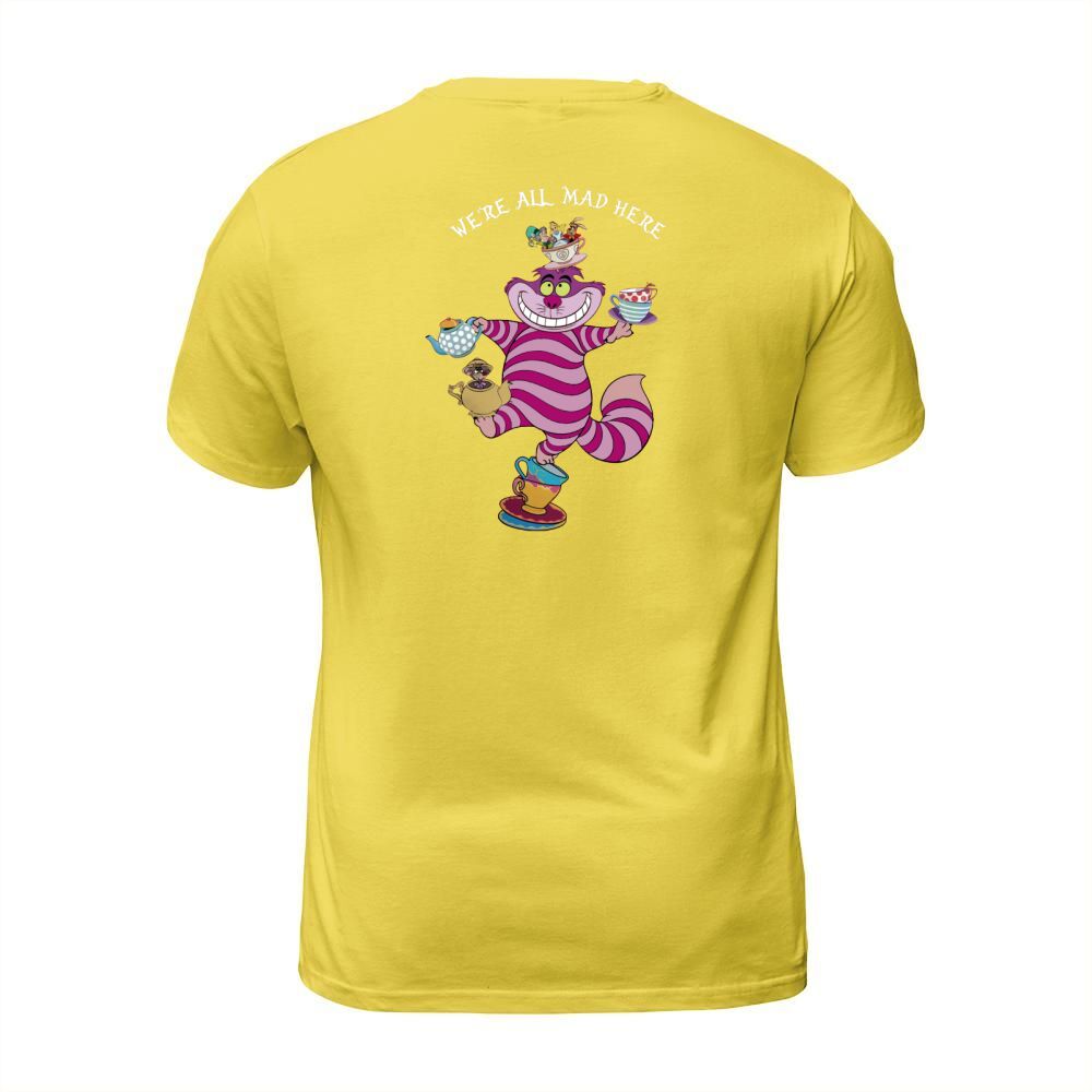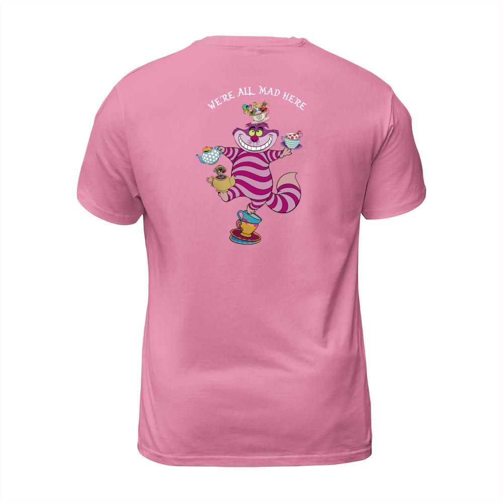 Shop Cheshire cat mad here T-Shirt Unisex custom made just for you. Available on many styles, sizes, and colors.