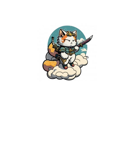 Chibi Samurai Cat Standing On The Clouds