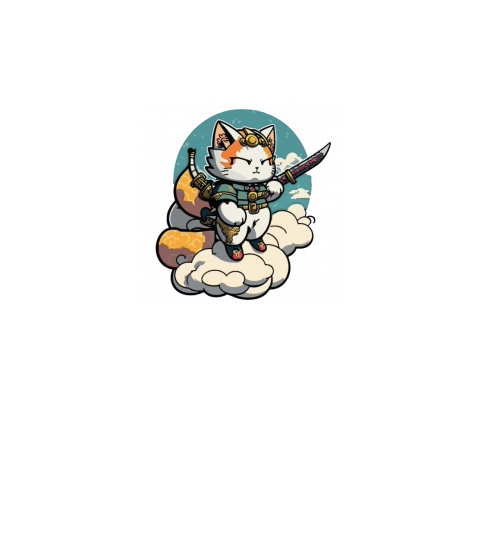 Chibi Samurai Cat Standing On The Clouds
