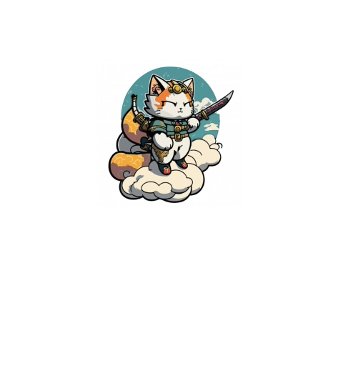 Chibi Samurai Cat Standing On The Clouds