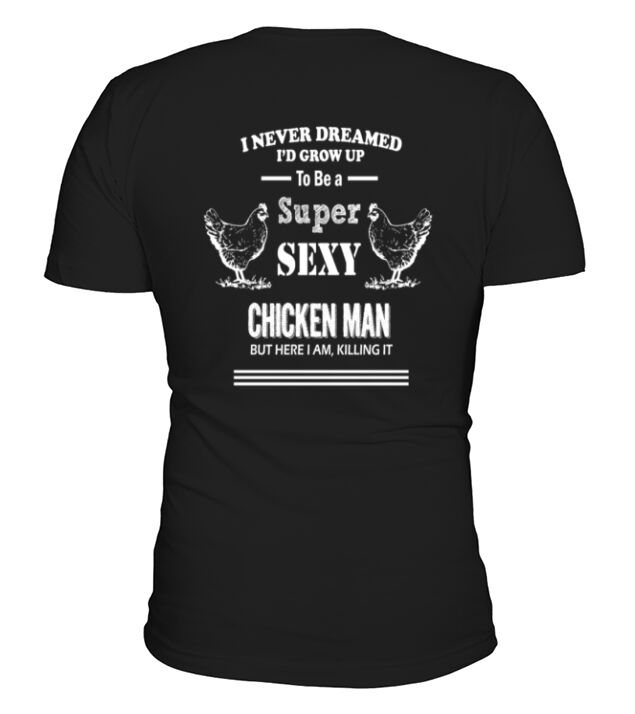 Shop Chicken Man V-Neck T-shirt custom made just for you. Available on many styles, sizes, and colors.