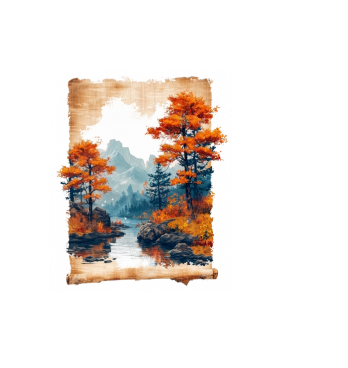 Classic Scenery Papyrus Scroll Onsen Japanese Art