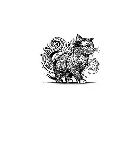 Clumsy Elegant House Cat In Tattoo Style