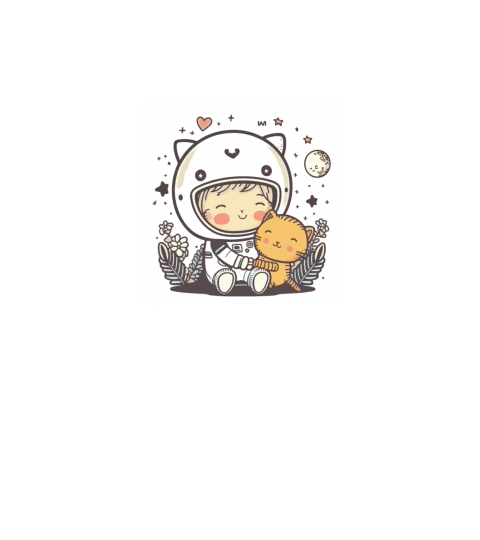 Cute Astronaut With A Cat Sitting On The Clouds