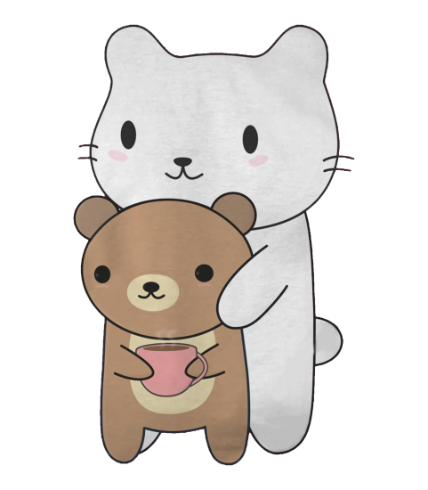 Cute Cat and Brown Bear TShirt_1025217_1_white shirts