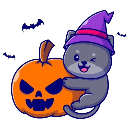 Cute witch cat hug pumpkin halloween
