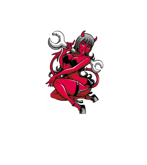 Devil Pin-Up Girl with Big Wrench