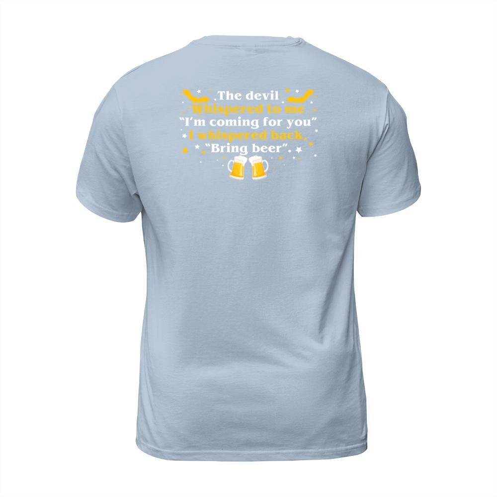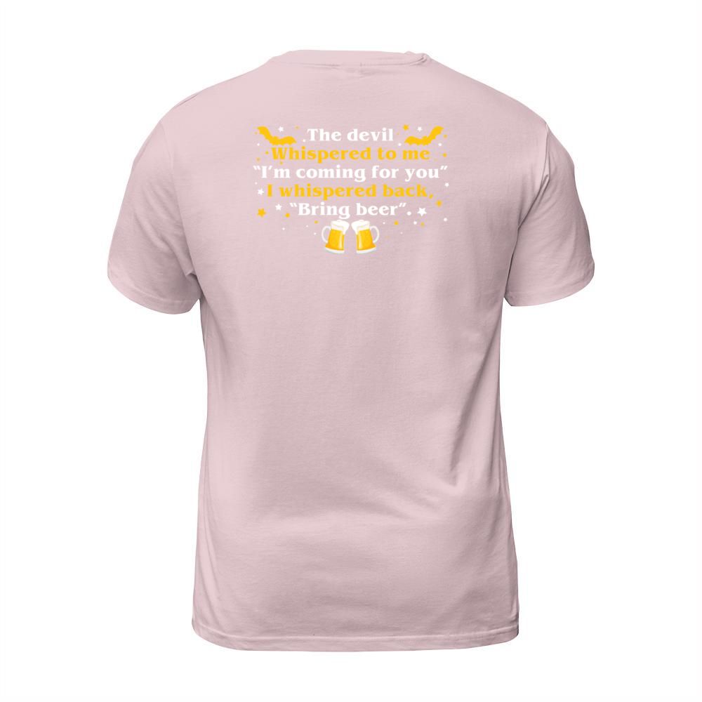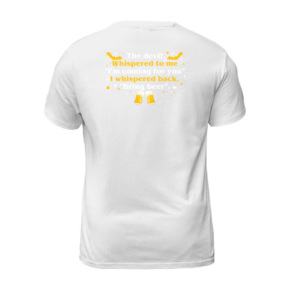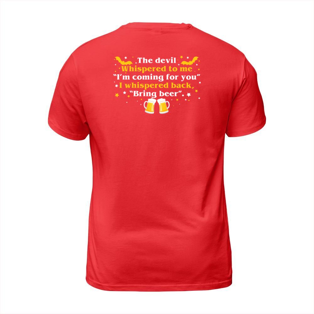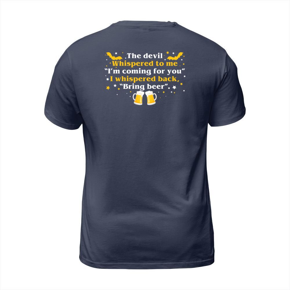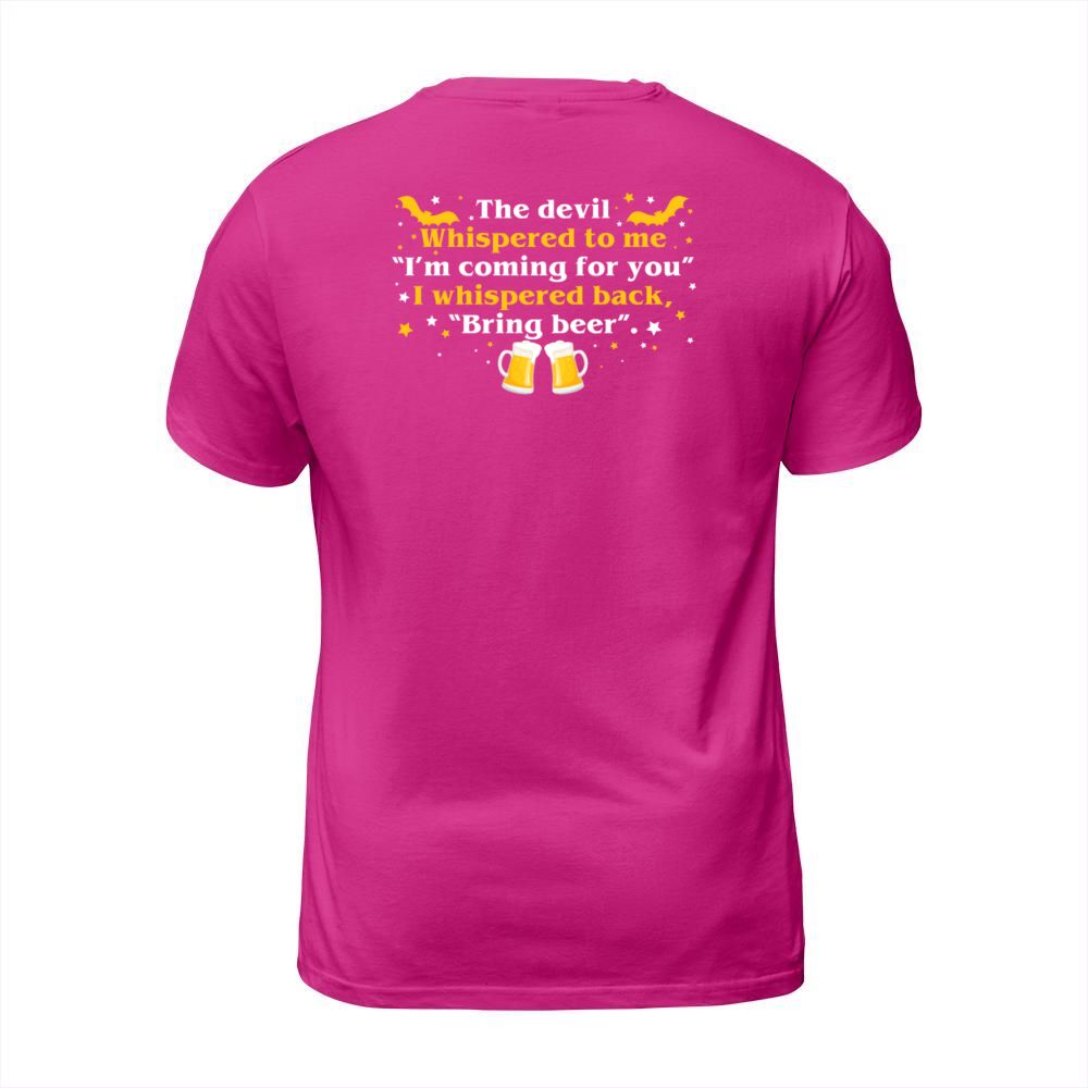 Shop Devil Whispered Im Coming I Whispered Back Bring T-Shirt Unisex custom made just for you. Available on many styles, sizes, and colors.
