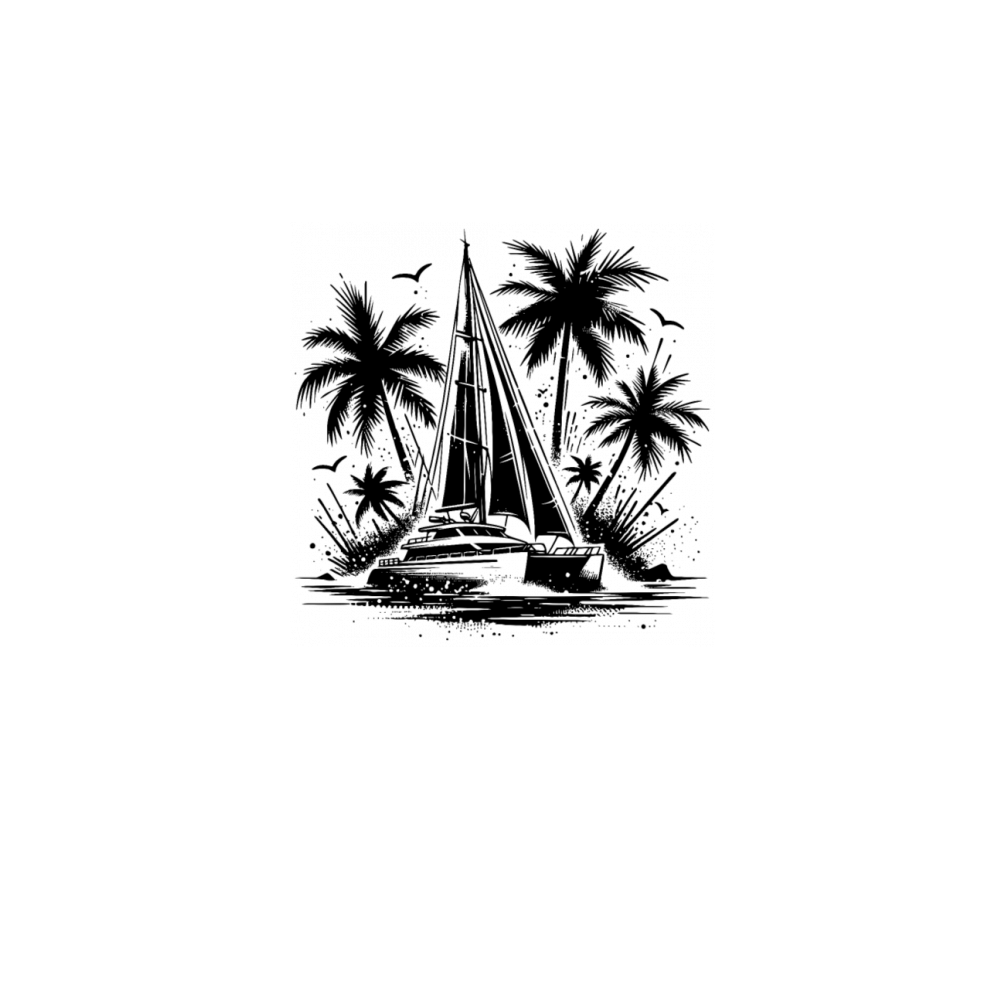Double Hull Catamaran Sailing Boat With Palm Trees