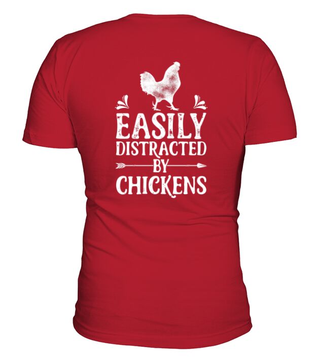 Shop Easily Distracted By Chickens V-Neck T-shirt custom made just for you. Available on many styles, sizes, and colors.