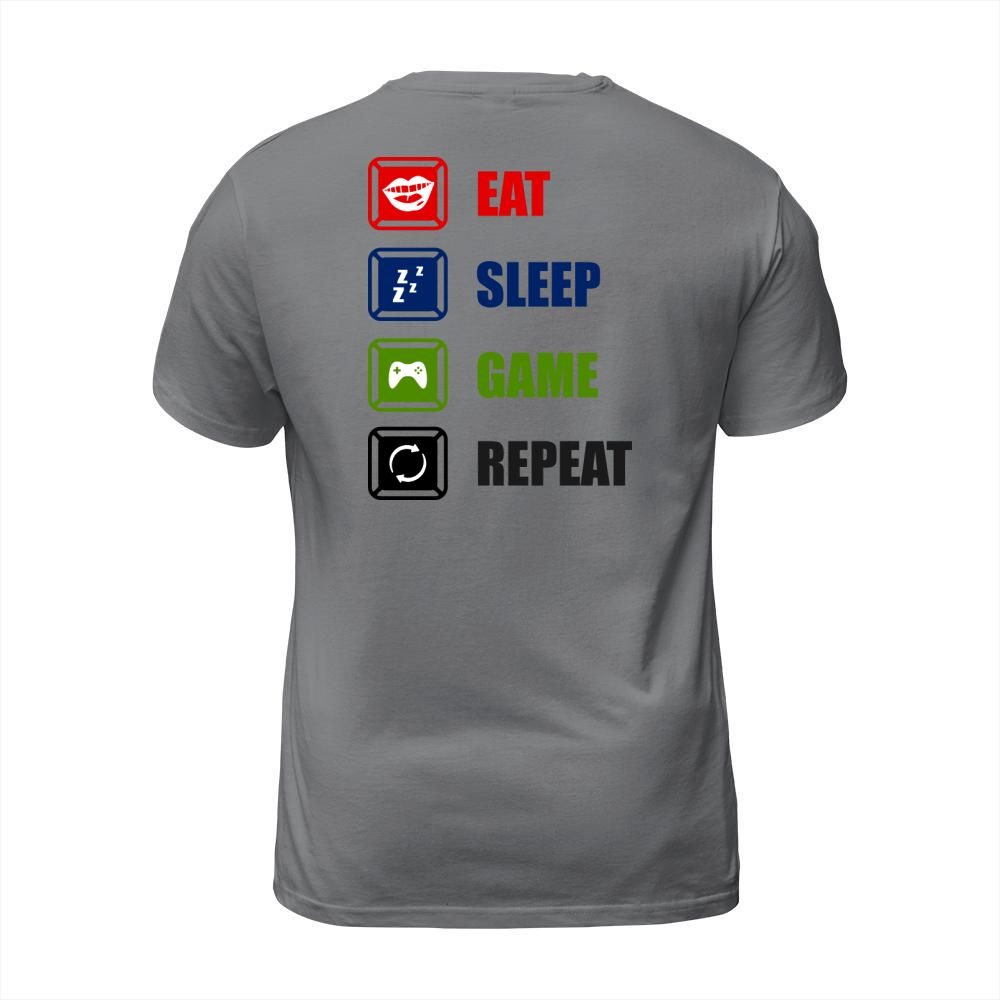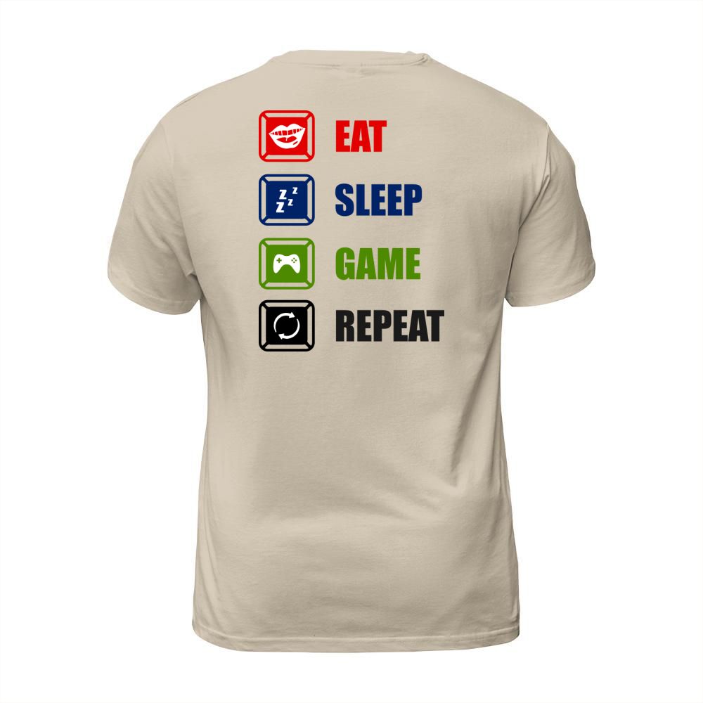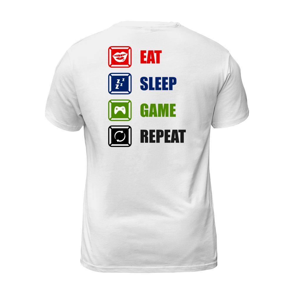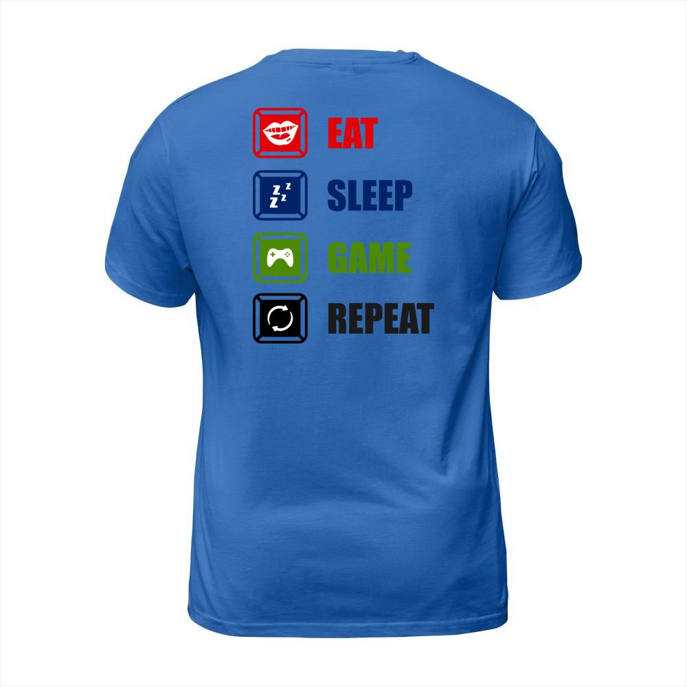Shop Eat Sleep Game Repeat T-Shirt Unisex custom made just for you. Available on many styles, sizes, and colors.