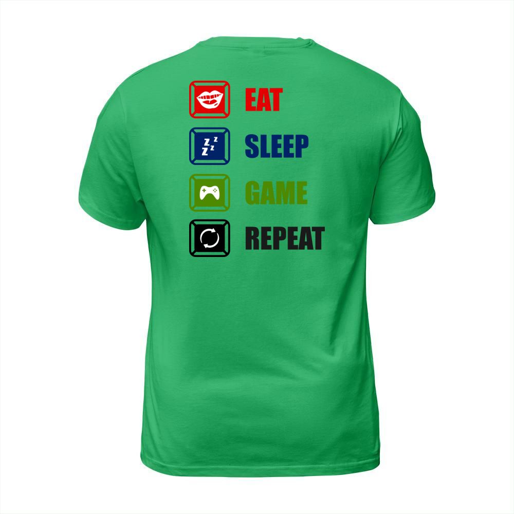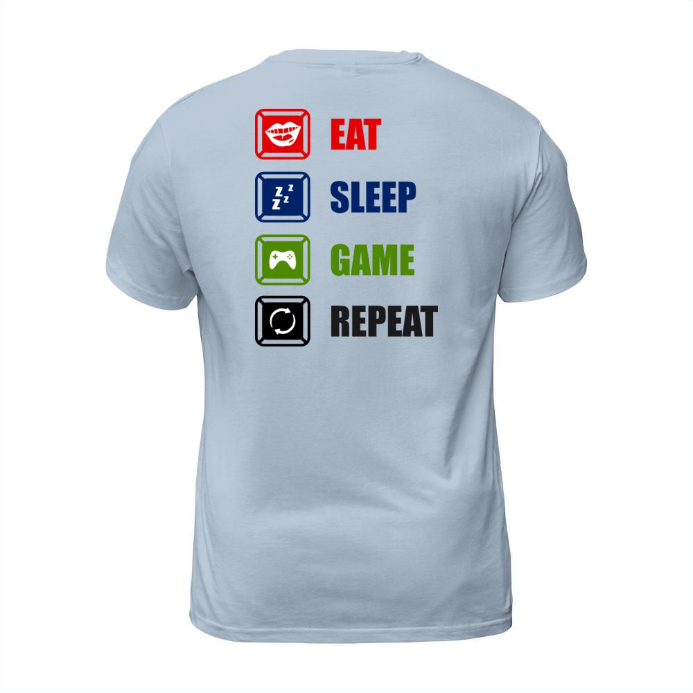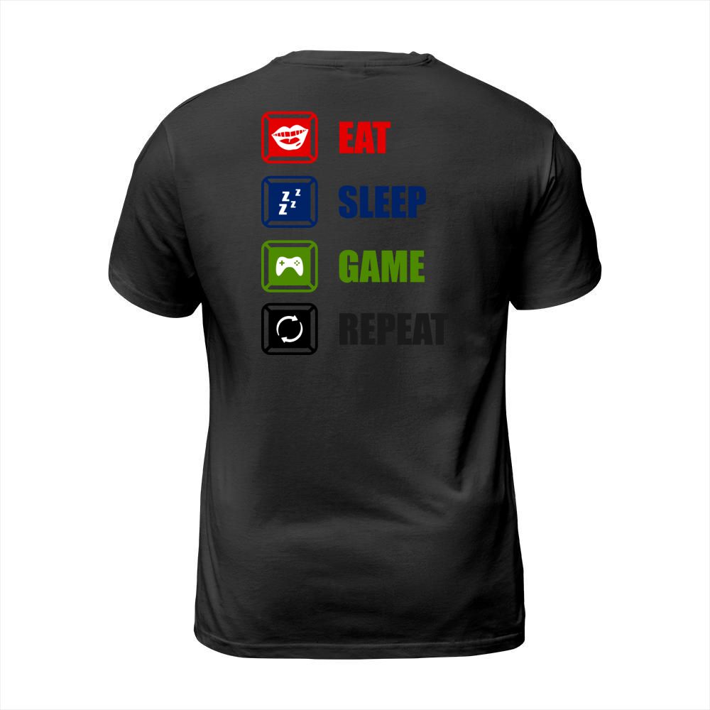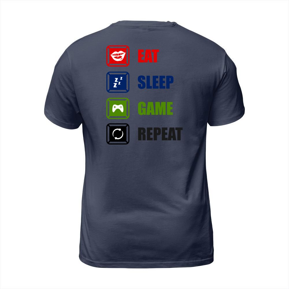 Shop Eat Sleep Game Repeat T-Shirt Unisex custom made just for you. Available on many styles, sizes, and colors.